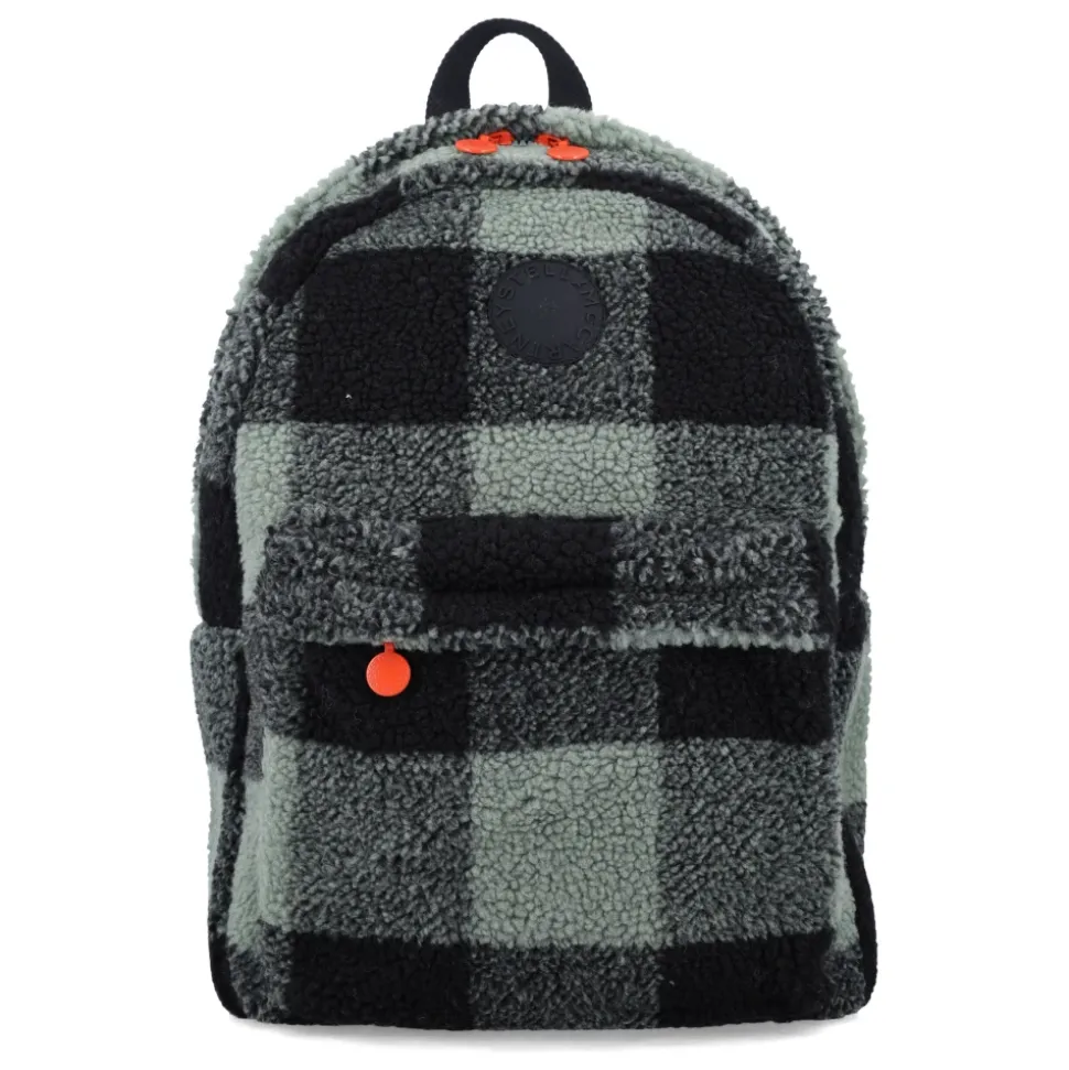 De Stella McCartney Kids-rugzak combineert functionaliteit en speelse stijl met een zachte schapenvacht-effectstof in een gedurfd ruitpatroon. Met een praktische voorzak met een contrasterende knoop en verstelbare gewatteerde bandjes is het de ideale accessoire voor alledaagse avonturen. Het cirkelvormige logopatch op de voorkant voegt een kenmerkende finishing touch toe. Afmetingen: 41 cm x 27 cm x 11 cm. Stof: 100% polyester.