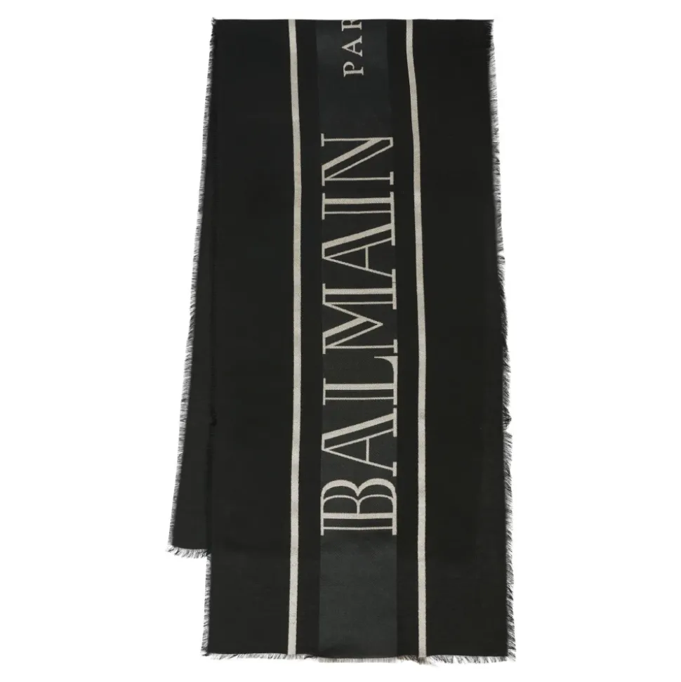 Upgrade de stijl van je kind met deze zwarte Balmain sjaal met franje randen en een contrasterend Balmain Couture logo. Gemaakt in Italië met afmetingen van 39cm x 155cm. Gemaakt van 65% viscose en 35% polyester. Alleen chemisch reinigen.