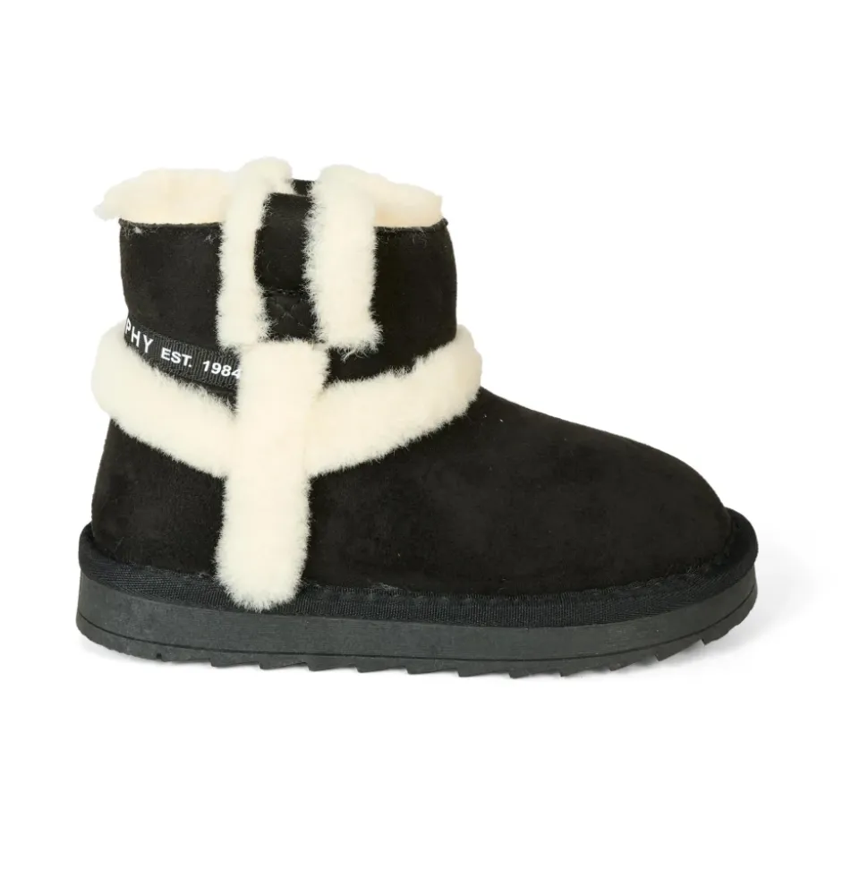 Upgrade de stijl van je kind met deze zwarte suède enkellaarsjes van Philosophy di Lorenzo Serafini. Voorzien van rubberen zolen, zachte faux fur voering, logo opdruk aan de achterkant en faux fur details. Gemaakt van 100% textiel.
