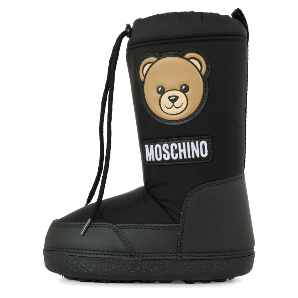 Upgrade de winterstijl van je kleintje met deze zwarte gevoerde sneeuwlaarzen van Moschino. Gemaakt in Italië, deze laarzen hebben een rubberen zool, zachte eco-shearling voering, verstelbare trekkoord aan de voorkant en tong aan de achterkant. Versierd met Teddy Bear-vormige patches en een geborduurd logo, zijn deze laarzen zowel stijlvol als gezellig. Materiaal: 50% synthetisch, 50% textiel.