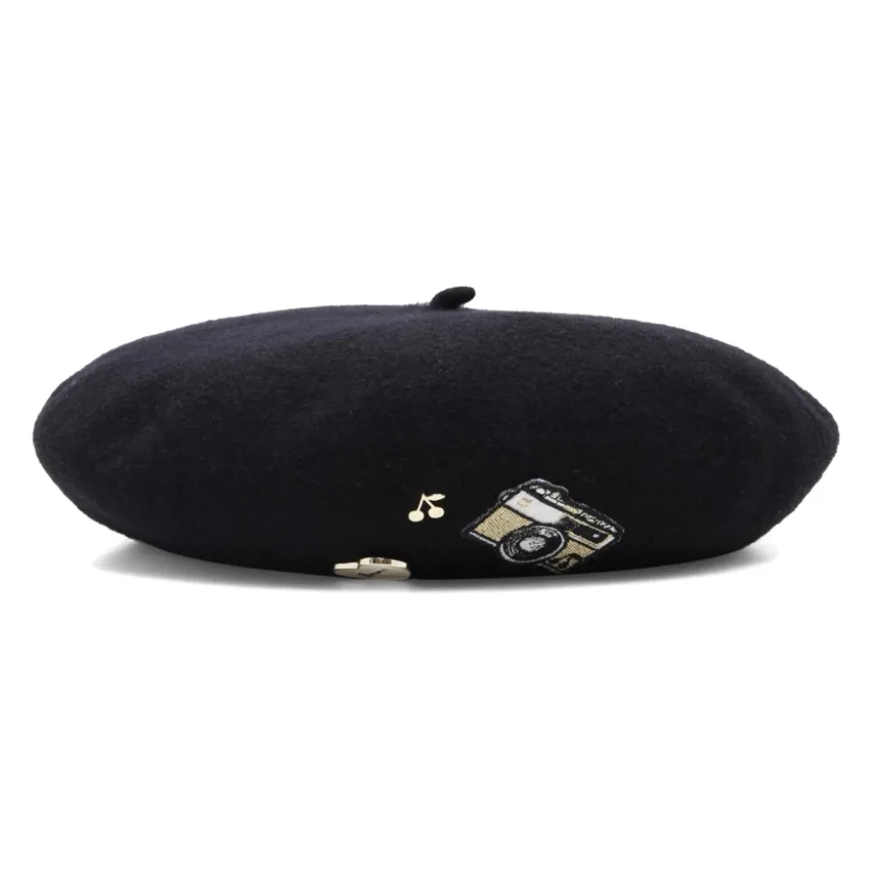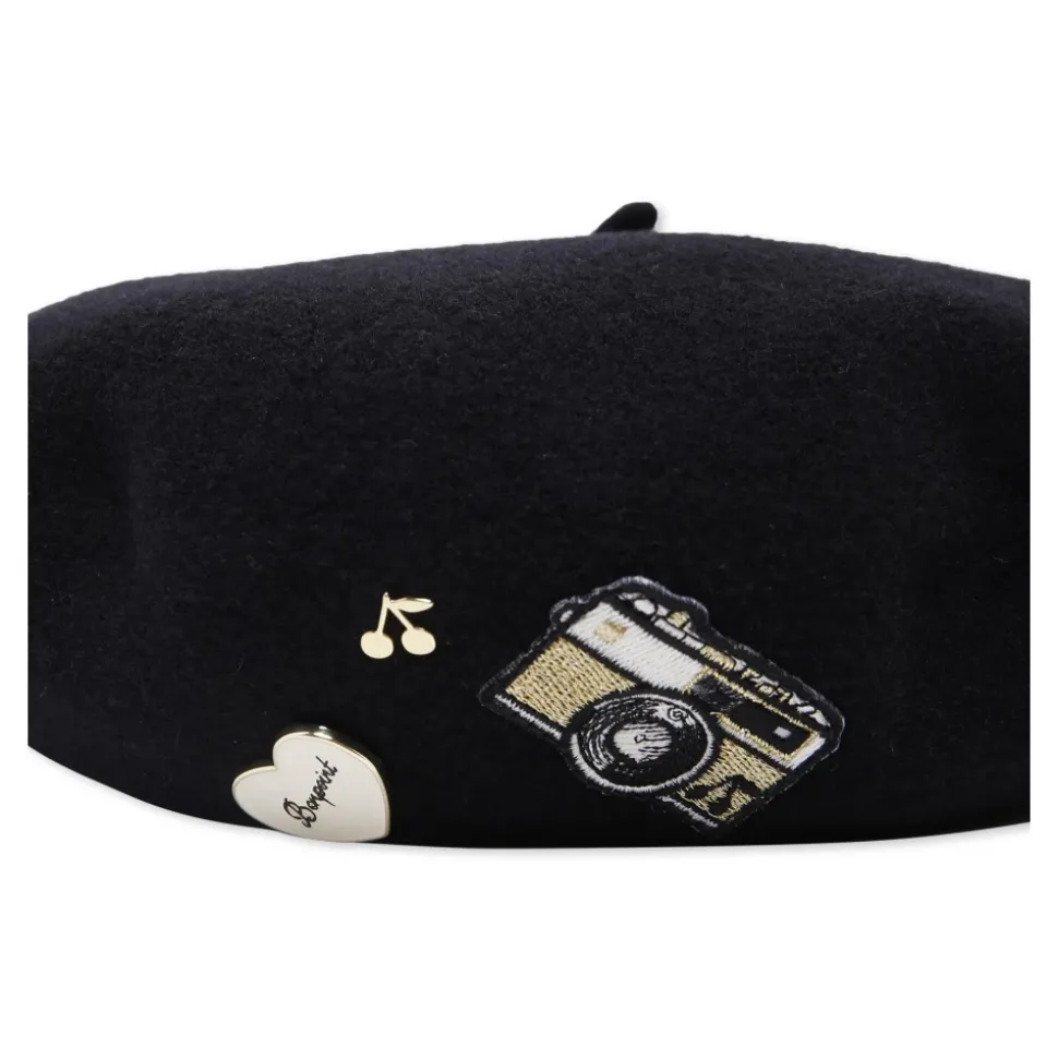 Upgrade de stijl van je kind met deze zwarte wollen baret van Bonpoint. Voorzien van een metalen hartlogo en iconische kers, versierd met een geborduurde camerapatch en kersen. Omtrek: 47 cm. Gemaakt van 100% wol. Alleen chemisch reinigen.