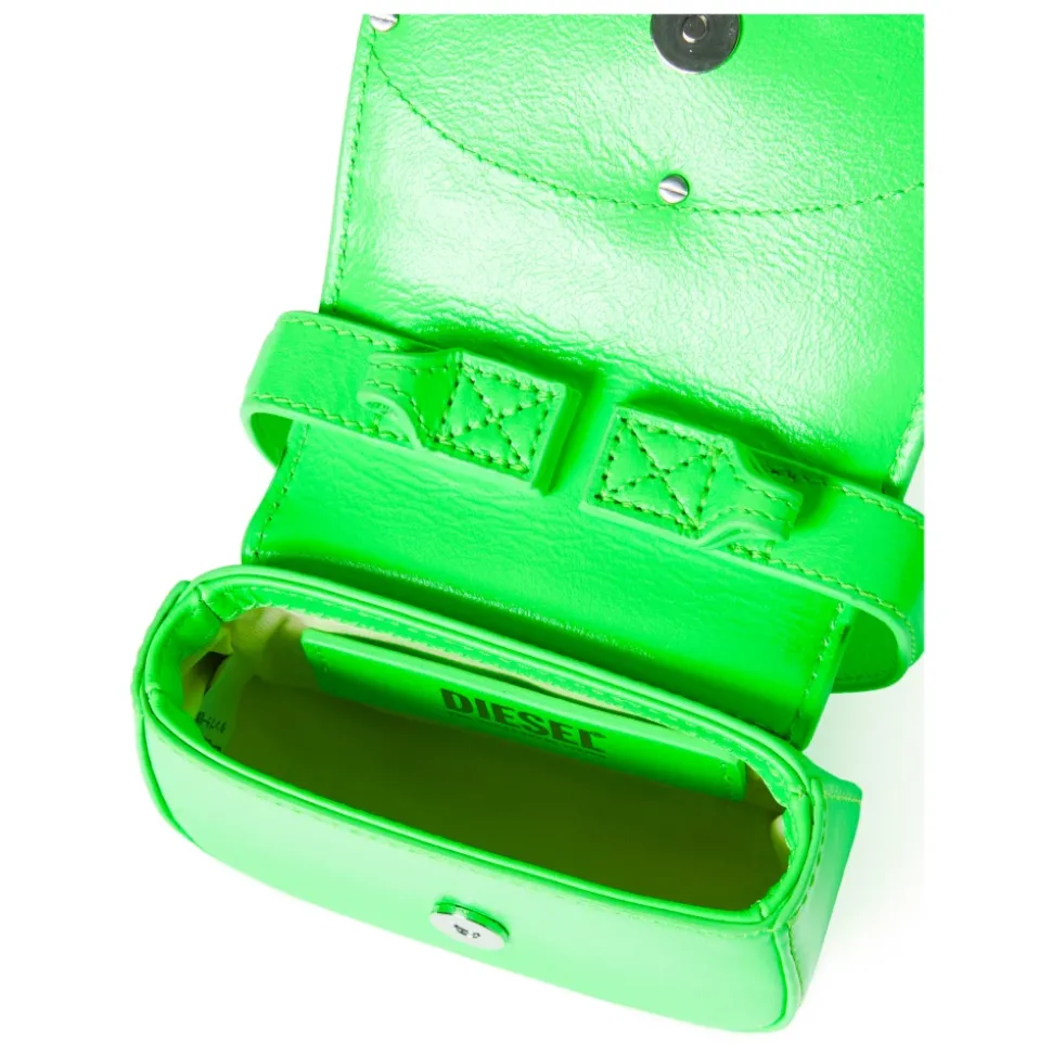 De 1DR XS tas van Diesel is een chique accessoire gemaakt van fluo leer, met een metalen ovale D-logo op de buitenste flap. Deze veelzijdige tas biedt zowel stijl als functionaliteit met zijn verstelbare en afneembare schouderriem, perfect om in de hand te dragen of crossbody. Belangrijkste kenmerken: Fluo Groen | Groen | Koeienleer | Verstelbare schouderriem | Afneembare schouderriem | Metalen ovale D-logo | Flap sluiting | Afmetingen en pasvorm: 9,5 cm hoog | 5 cm breed | 12,5 cm lang | Breedte handvat: 7 cm | Tas volume: 0,2 liter | Samenstelling en onderhoud: 100% Koeienleer
