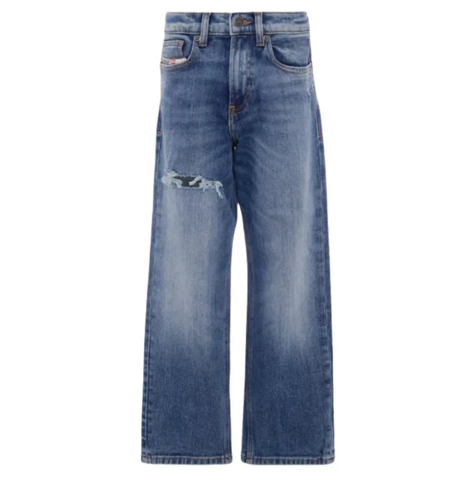 De Diesel 2001 D-Macro-J jeans combineren een relaxed, los silhouet met vervaagde details en imitatie slijtageplekken voor een casual, alledaagse look. Belangrijkste kenmerken: Blauw | Denim | Katoen | Lichte stretch | 5-pocket model | Riemlussen | Rits- en knoopsluiting aan de voorkant | Verstelbare interne elastische tailleband met knoop | Vervaagde details | Imitatie slijtageplekken | Logo patch op de achterkant | Afmetingen & pasvorm: Loose fit | Samenstelling & verzorging: 99% katoen | 1% elastaan | Machinewas koud (max 30°C), fijne was. Niet bleken. Niet in de droogtrommel. Strijken op lage temperatuur.