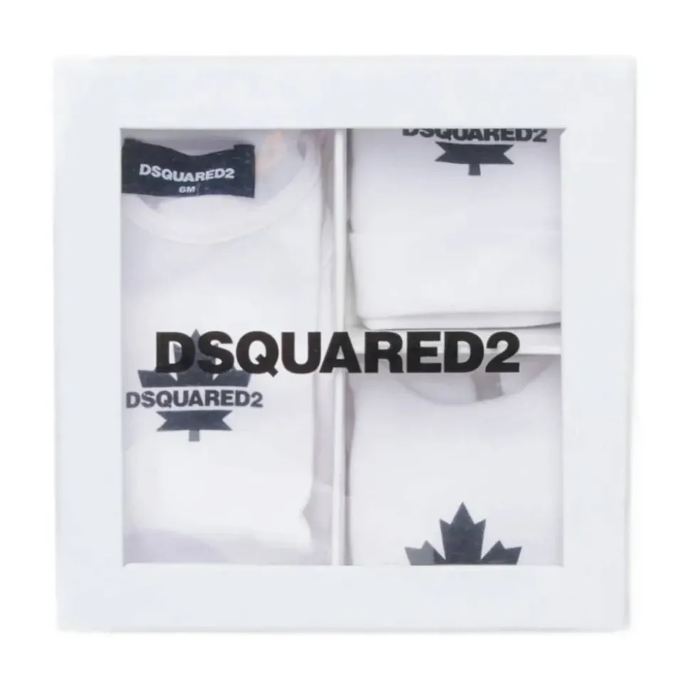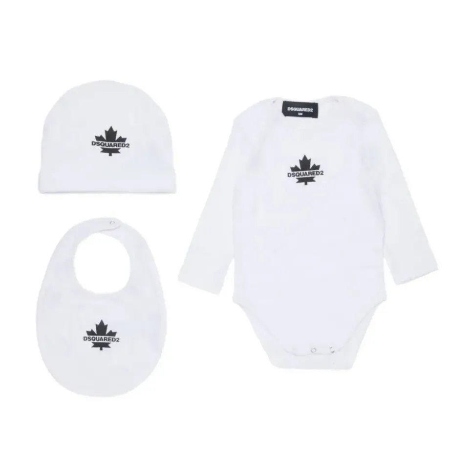 De 3-delige set van Dsquared2 combineert een bodysuit met lange mouwen, een bijpassende muts en slabbetje met het Maple Leaf-logo van het merk. De set is ontworpen voor gemakkelijk aankleden en snel verschonen en is volledig gemaakt van katoen voor dagelijks comfort. Belangrijkste kenmerken: Wit | Katoen | Drukknoopsluiting in het kruis | Drukknoopsluiting op het slabbetje | Bodysuit met lange mouwen | Maple Leaf-logo op de voorkant | Inclusief bijpassende muts en slabbetje | Samenstelling & onderhoud: Body: 100% katoen | Muts: 100% katoen | Slabbetje: 100% katoen