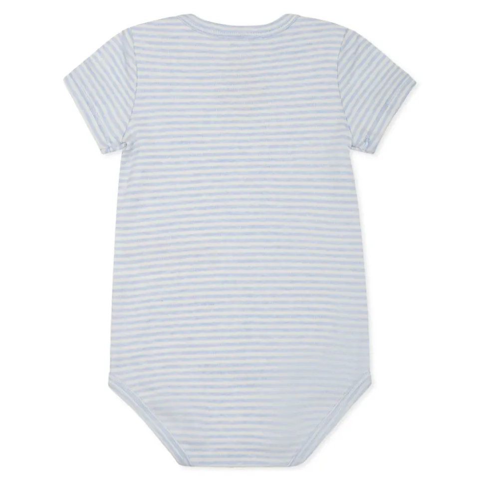 Kleur: MulticolorBeschrijving: Multicolor romper, van katoen, bestaande uit drie rompers, lichtblauw, wit en lichtblauw gestreept; met korte mouwen, ronde hals en drukknoopsluiting tussen de benen. Ze zijn versierd met een logopatch op de borst en mouw.Details: 100% katoen. Machinewas op 30°C.