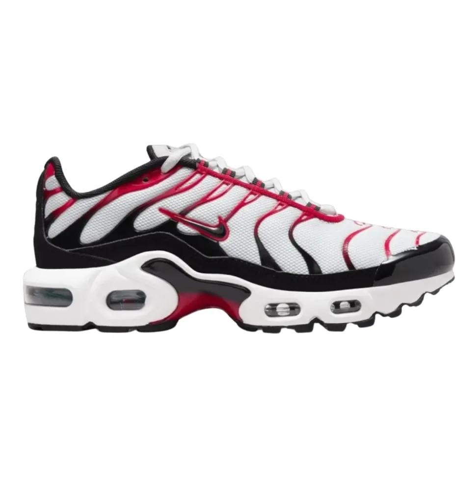 De Nike Air Max Plus combineert Tuned Air-demping met een ademend bovenwerk van mesh voor dagelijks comfort en een opvallende, golvende styling. Het ontwerp biedt een balans tussen zichtbare demping en ondersteunende overlays voor de hele dag. Belangrijkste kenmerken: Pure platinum | Zwart | Wit | University red | Mesh | Tuned Air-demping | Ademend bovenwerk | rubberen buitenzool | Ondersteunende middenvoetboog | Golvende overlays | TPU/plastic accenten | Iconisch Air Max-silhouet | Samenstelling & onderhoud: Bovenwerk van mesh | Synthetische overlays | Rubberen buitenzool | Afnemen met een vochtige doek.
