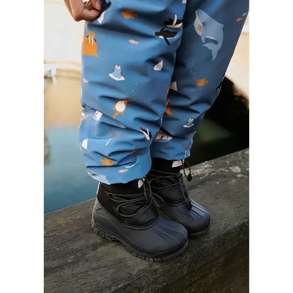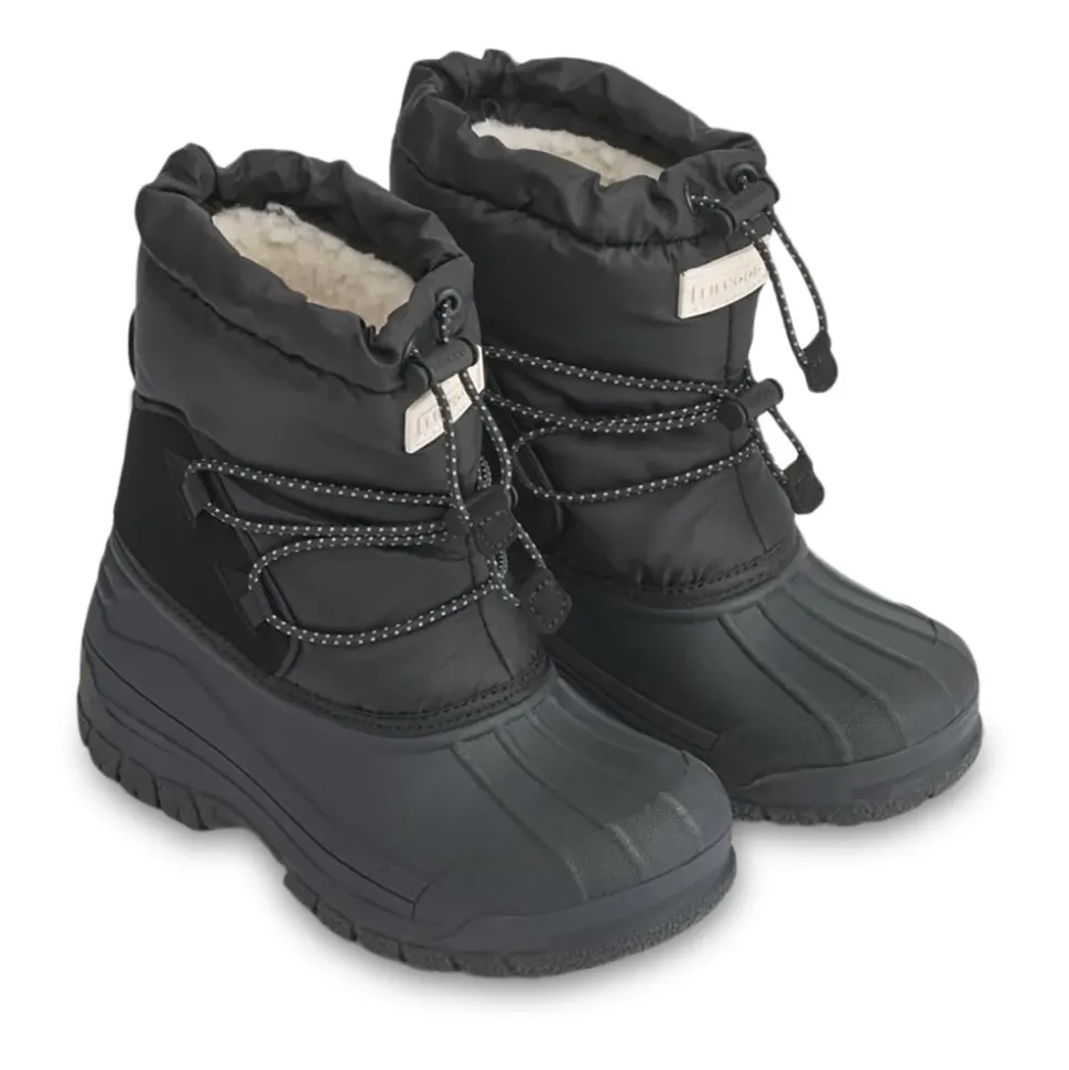 Liewood ANIA Boots zijn geïsoleerde winterlaarzen, ontworpen voor koude, natte omstandigheden. Ze combineren een waterbestendige constructie met een warme polyester-wollen voering voor betrouwbare bescherming en comfort. Belangrijkste kenmerken: Zwart | Synthetisch textiel | Waterdichte/waterafstotende constructie | Geïsoleerde voering voor thermisch comfort | Antislipzool met profiel | Elastische veter met stopper voor verstelbare pasvorm | Gewatteerde binnenzool voor extra comfort | Flexibele schacht voor gemakkelijk aan- en uittrekken | Reflecterende details | Hoge schacht | Ronde neus | Brede, stabiele zool | Verfijnde stiksels en strak silhouet | Samenstelling & onderhoud: Bovenkant: Synthetisch textiel | Voering: Polyester- en wolmix | Zool: Synthetisch materiaal