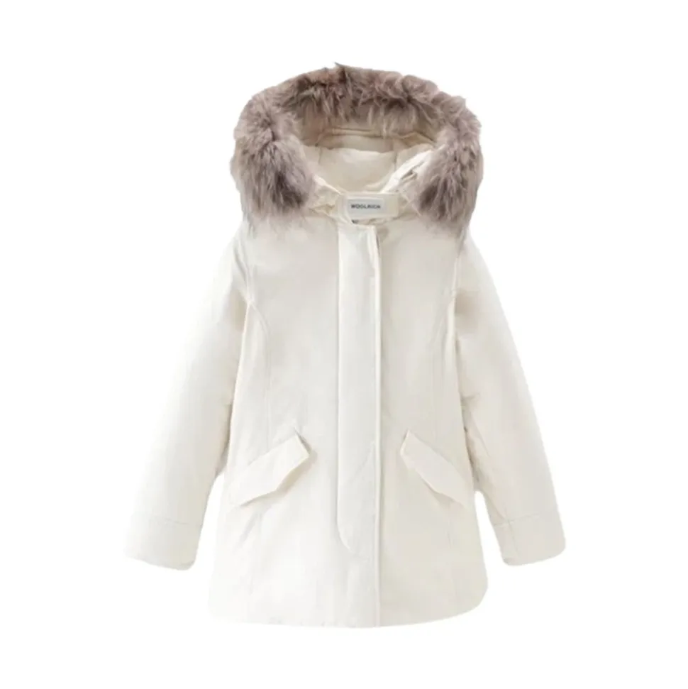 Blijf warm en stijlvol deze winter met de Woolrich Kids Winterjas. Gemaakt van Ramar-stof met een RDS-certificering, is deze jas zowel waterafstotend als windbestendig. De Teflon-coating voegt een extra laag bescherming toe. De verborgen rits en drukknopen zorgen voor een veilige sluiting, terwijl de afneembare bontinzet op de beschermende capuchon een vleugje luxe toevoegt. De diagonale zakken met kleppen en geribbelde binnenmanchetten zijn praktisch en comfortabel. Deze jas is perfect voor het winterseizoen. Machinewas op 30°C, niet strijken, vermijd wassen met lichte kleuren en gebruik geen bleekmiddel. Gemaakt in China. Samenstelling: 60% katoen, 40% polyamide, 100% polyester, 70% grijze eendendons, 30% veer, 100% wasbeerbont.