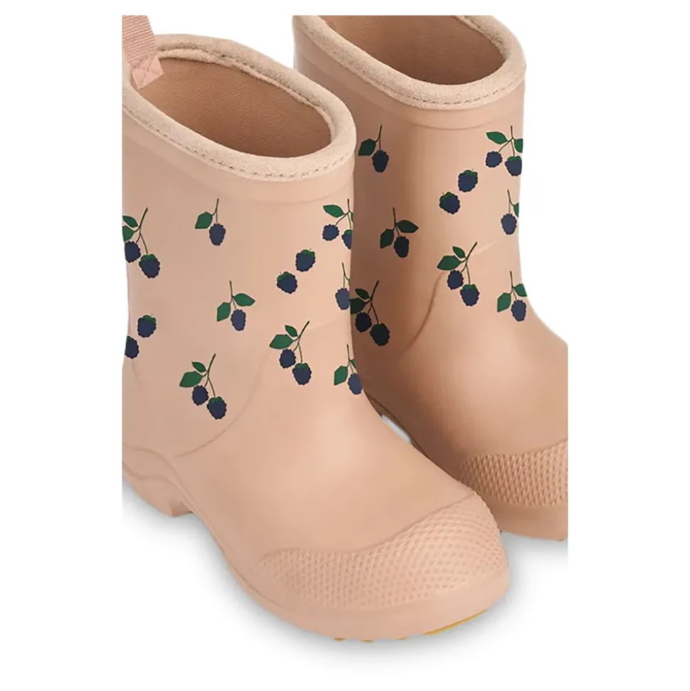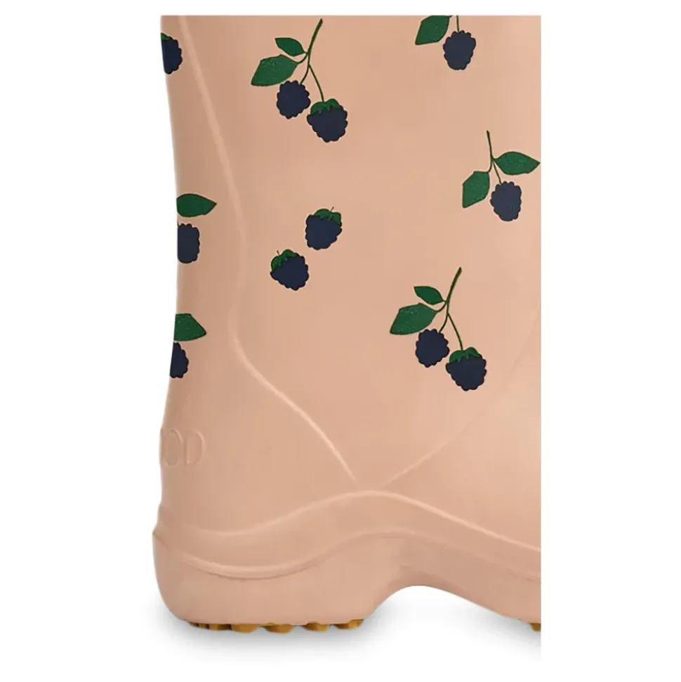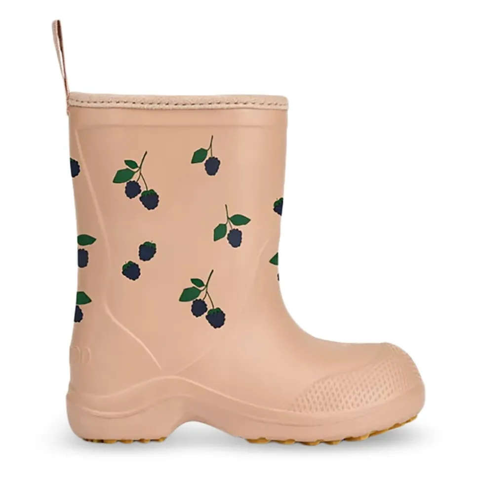 Liewood Aston Regenlaarzen combineren een delicaat bessenprint design met waterdichte bescherming en een , gripvaste buitenzool. De lichtgewicht, boven de enkel vallende vorm bevat een aantreklus voor gemakkelijk aan- en uittrekken en dagelijks spetterplezier. Belangrijkste kenmerken: Roze | Waterdicht | Flexibele constructie | TPR buitenzool voor grip | Aantreklus aan de achterkant voor gemakkelijk aan- en uittrekken | Verstevigde teenstructuur voor extra duurzaamheid | Bessen- en bladmotief | Brede, afgeronde teen | Subtiel logo in reliëf