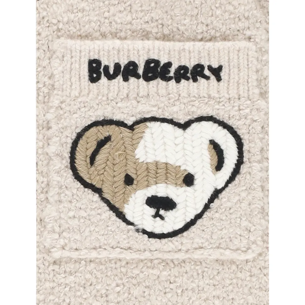 Kleed je kleine jongen in stijl met deze beige Burberry Infant katoenen en wollen onesie. Voorzien van een ronde hals met knopen, lange mouwen, twee voorzakken met een contrasterend geborduurd logo en knopen aan de zoom.