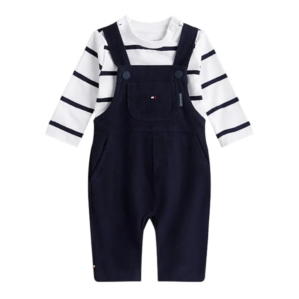 Deze Tommy Hilfiger Baby set combineert klassieke stijl en comfort voor de kleintjes. Het bevat een zachte ribfluwelen overall en een gestreept katoenen t-shirt, perfect voor de delicate huid van de baby en creëert een schattige en praktische look voor elke gelegenheid. Gemaakt van warm, en comfortabel materiaal, met verstelbare bandjes en zijknopen voor gemakkelijk aankleden. Het heeft ook geborduurde details met het logo op de overall, zorgvuldige afwerkingen en drukknoopsluitingen in het kruis voor eenvoudige luierwisselingen. Een perfecte set voor elk seizoen, waarbij nautische elegantie wordt gecombineerd met corduroy-warmte.
