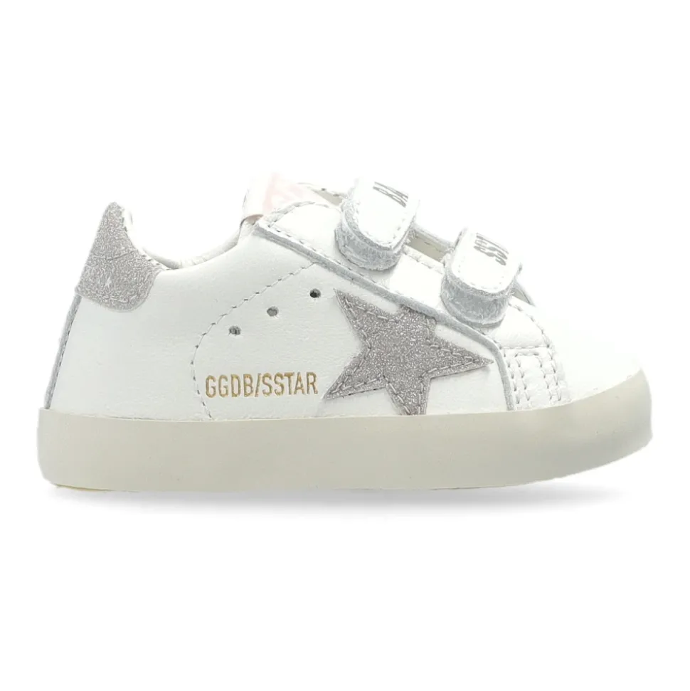 De Golden Goose Baby School Sneakers combineren Italiaans vakmanschap met een eenvoudig, tijdloos silhouet. Ze zijn gemaakt van leer en hebben handige klittenbandsluitingen voor comfortabel dagelijks gebruik. Belangrijkste kenmerken: Wit | Leer | Comfortgericht ontwerp | rubberen zool | Klittenbandsluitingen | Zachte leren voering | Licht verhoogde zool voor extra comfort | Ronde neus | Klassiek silhouet | Zilverkleurige sterapplicatie | Gouden accenten | Subtiele, discrete versieringen | Afmetingen & pasvorm: Zoolhoogte op het hoogste punt: 1 cm | Samenstelling & onderhoud: Leer (bovenkant) | Leer (voering) | Rubber (zool)