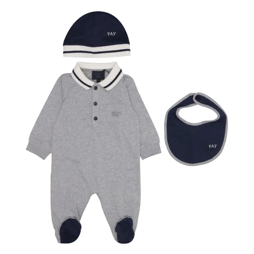 Kleed je kleintje in stijl met deze schattige baby set van Fay. Gemaakt van een luxe kasjmier wolmix, bevat het een comfortabele romper, een schattige muts en een handige slab, allemaal met de iconische Fay logo`s. Belangrijkste kenmerken: Grijs | Kasjmier wolmix | Gepersonaliseerde knopen aan de voorkant voor gemakkelijk aankleden | Iconische Fay logo`s | Afmetingen en pasvorm: Normale pasvorm | Samenstelling en onderhoud: Kasjmier wolmix | Uitsluitend chemisch reinigen