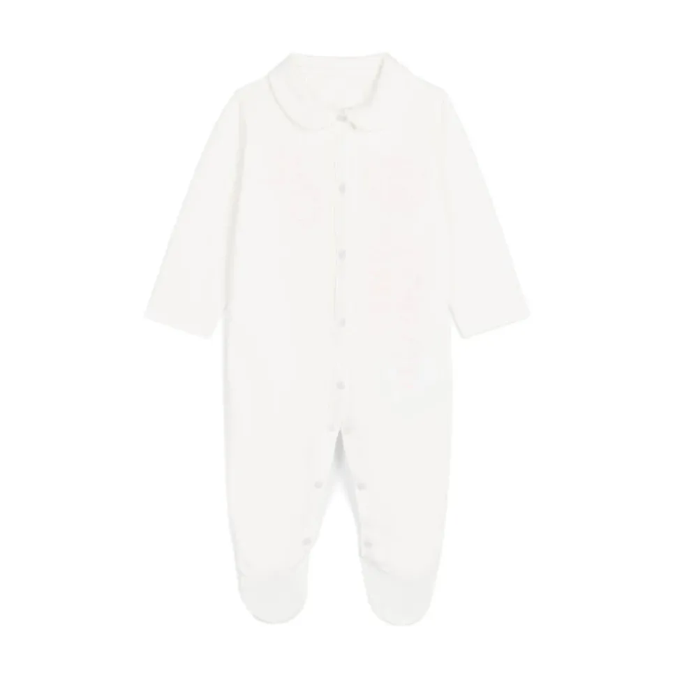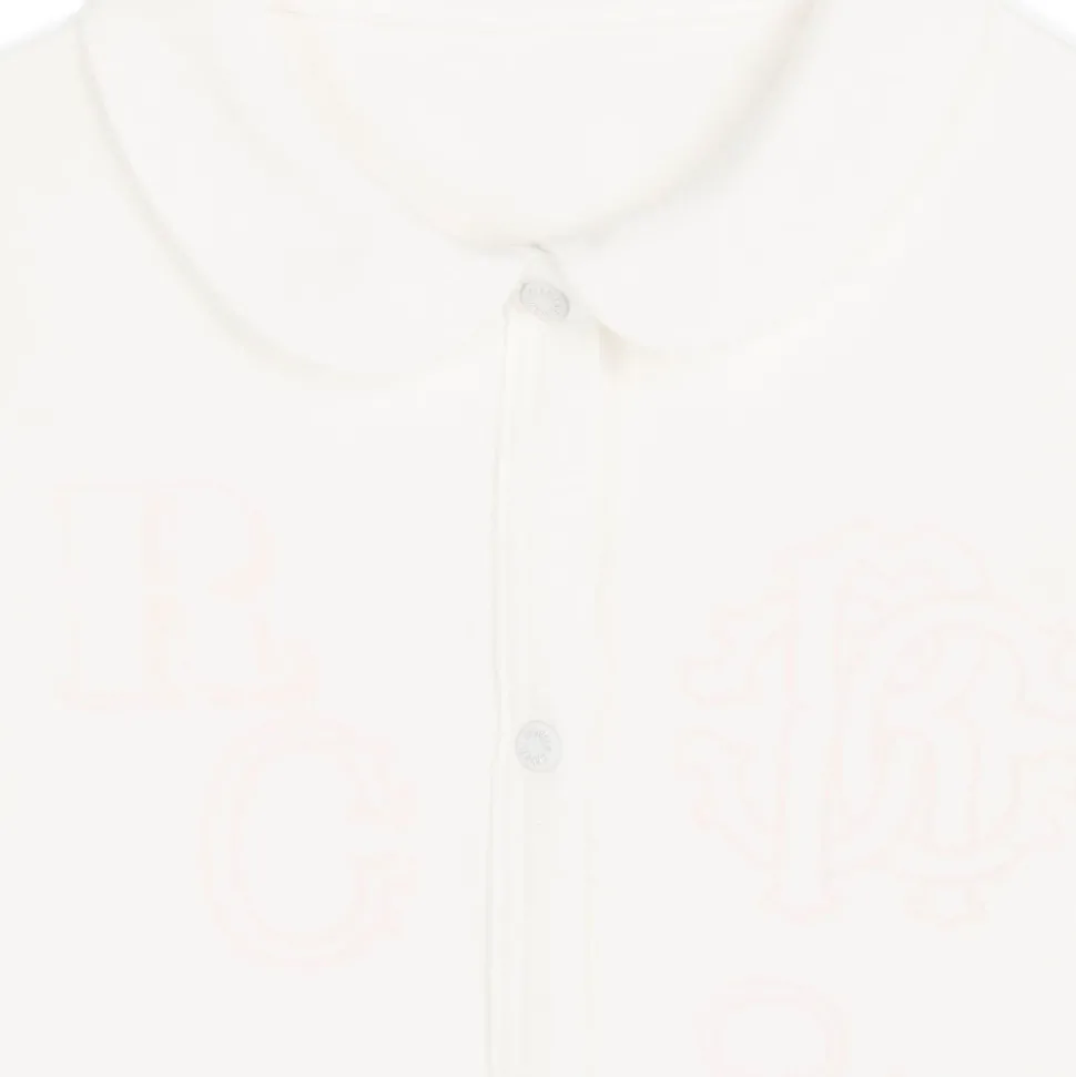 Kleed je kleintje in stijl met de Roberto Cavalli Monogram Babygro. Deze babygro, voorzien van de iconische RC-monogramprint, combineert elegantie met comfort, perfect voor elke gelegenheid. Belangrijkste kenmerken: Wit | Katoen | Elastaan | Drukknoopsluiting bij de benen | Sluiting aan de voorkant | Ronde kraag | Lange mouwen | Logoprint op de voorkant | Samenstelling en onderhoud: 94% katoen | 6% elastaan | Machinewas koud, droogtrommel laag