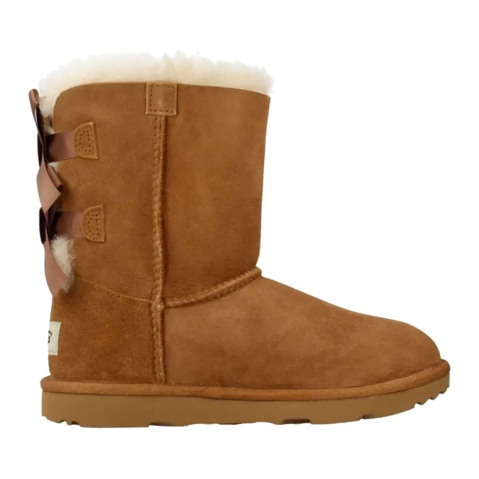 UGG Bailey Bow II combineert de klassieke warmte van schapenvacht van het merk met decoratieve satijnen strikken voor een knusse, alledaagse laars. Het ontwerp combineert een zachte Twinface bovenkant met een lichtgewicht Treadlite-buitenzool voor comfortabel dragen en grip. Belangrijkste kenmerken: Bruin | Kastanje | Schapenvacht | Voorbehandeld om water en vlekken af te stoten | Lichtgewicht, gripvaste Treadlite-buitenzool | Voetbed van schuim | UGGpure wollen binnenzool | Slip-on model | Vaste satijnen strikken langs de achterkant van de schacht | Ronde neus | Suède hielstuk | Schachthoogte 15,24 cm | Afmetingen & pasvorm: Schachthoogte: 15,24 cm | Samenstelling & verzorging: Twinface schapenvacht bovenkant | Suède hielstuk | UGGpure wollen binnenzool | Voetbed van schuim | Treadlite by UGG-buitenzool | Polyester/nylon binding | Satijnen strikken | Voorbehandeld om vocht en vlekken af te stoten.