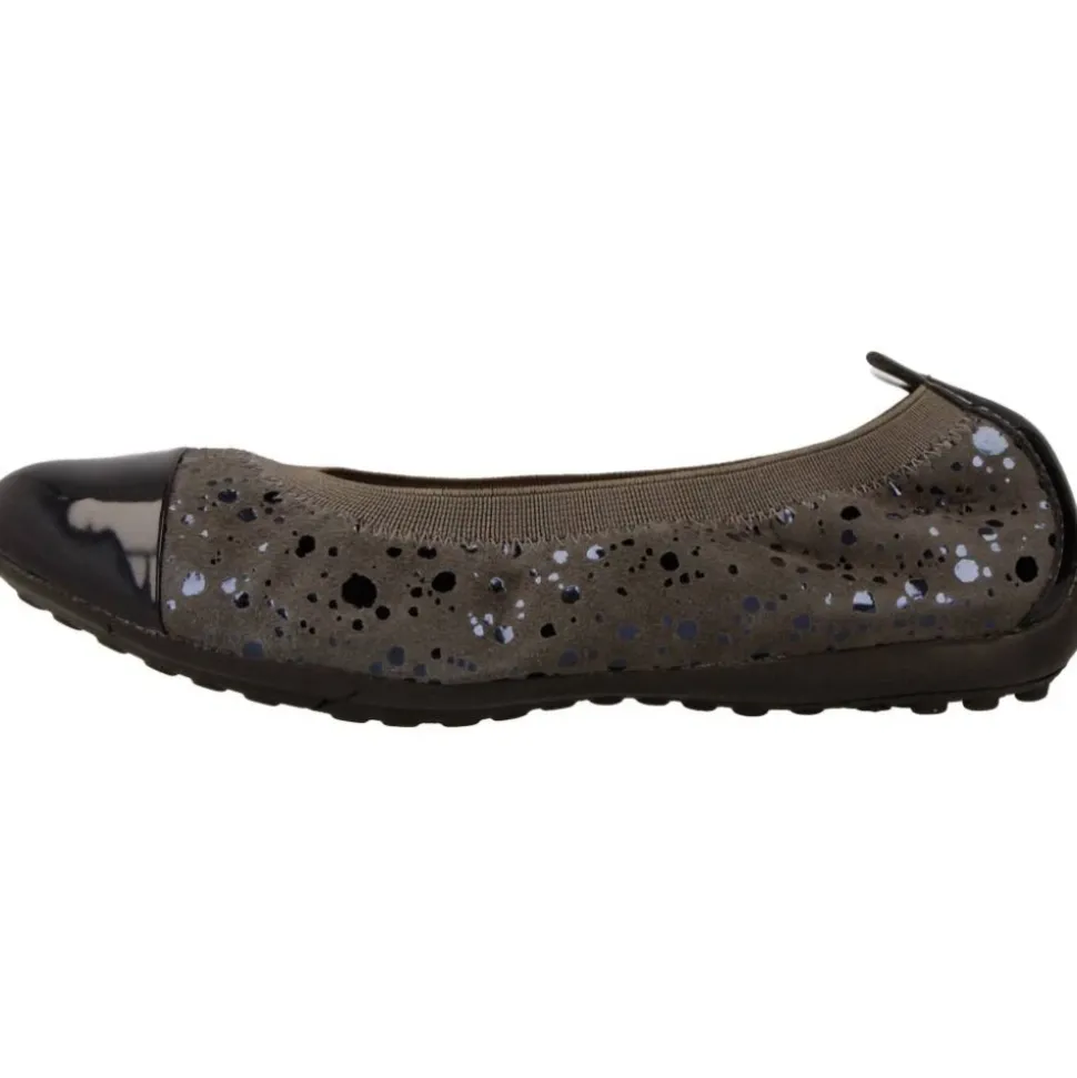 Maak kennis met de J PIUMA BAL B J62B0B van Geox, een stijlvolle en comfortabele ballerina schoen voor meisjes. Gemaakt van grijs leer met een lakleren neus, is deze schoen zowel modieus als . Het interieur is gevoerd met textiel en heeft een leren binnenzool voor extra comfort. De rubberen zool is gebaseerd op de exclusieve ademende en waterdichte membraantechnologie van Geox, waardoor natuurlijke temperatuurregulatie mogelijk is en er een ideaal microklimaat in de schoen ontstaat.