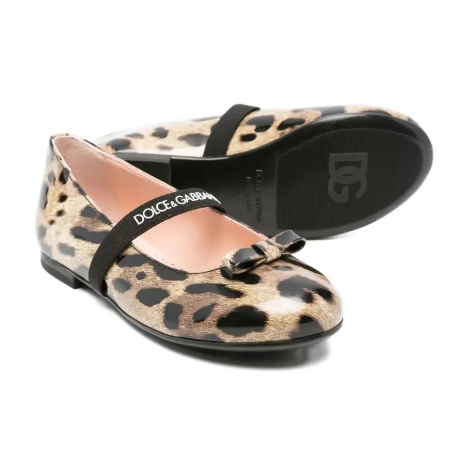 Dolce & Gabbana Ballerina in kalfsleer met luipaardprint, gedetailleerd met een elastiek met logo aan de voorkant en een strik. De platte rubberen zool biedt dagelijks comfort voor casual of geklede looks. Belangrijkste kenmerken: Bruin | Kalfsleer | Elastische band met logo | Platte rubberen buitenzool | Luipaardprint afwerking | Strikdetail | Logo-elastiek aan de voorkant | Ballerina silhouet | Samenstelling & onderhoud: Buitenkant: 100% kalfsleer | Voering: 100% leer | Zool: 100% rubber | Specialistische leerreiniging.