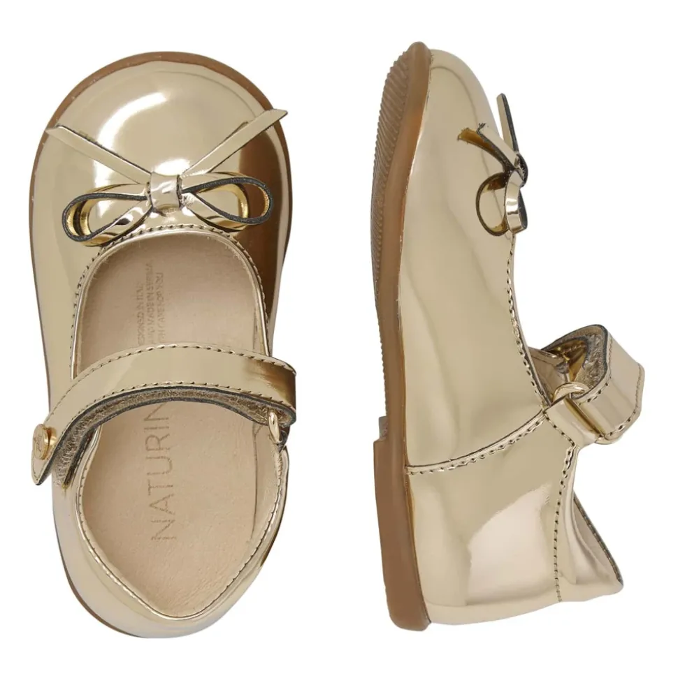Naturino Ballet is een ballerina met spiegelend leer die een reflecterende, geklede afwerking geeft aan speciale gelegenheden. Het combineert een met leer gevoerde binnenkant met een verstelbaar bandje over de wreef en een antislip rubberen zool voor een veilige, comfortabele pasvorm. Belangrijkste kenmerken: Platinum | Spiegelend leer | Antislip rubberen zool | Leren voering en binnenzool | Verstelbaar bandje over de wreef | Strik op de teen | Spiegelende afwerking | Klassiek ballerina silhouet | Samenstelling & verzorging: Leer | Rubber