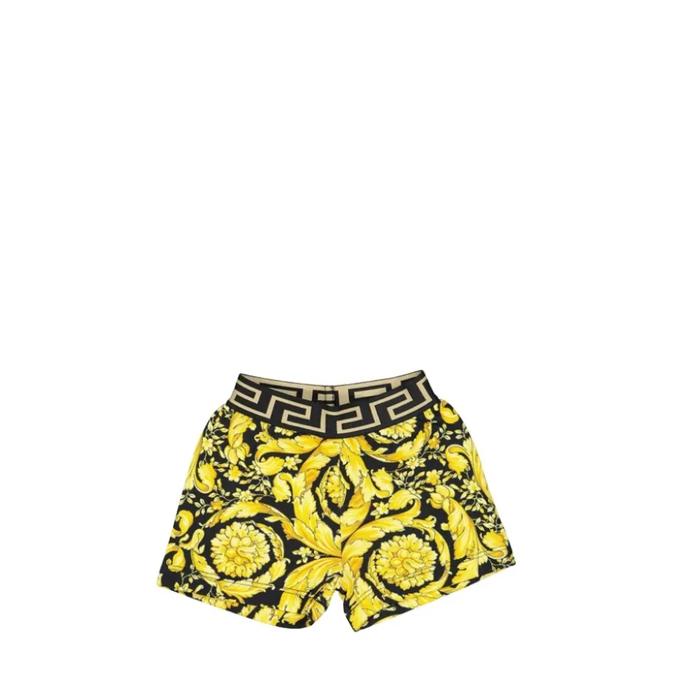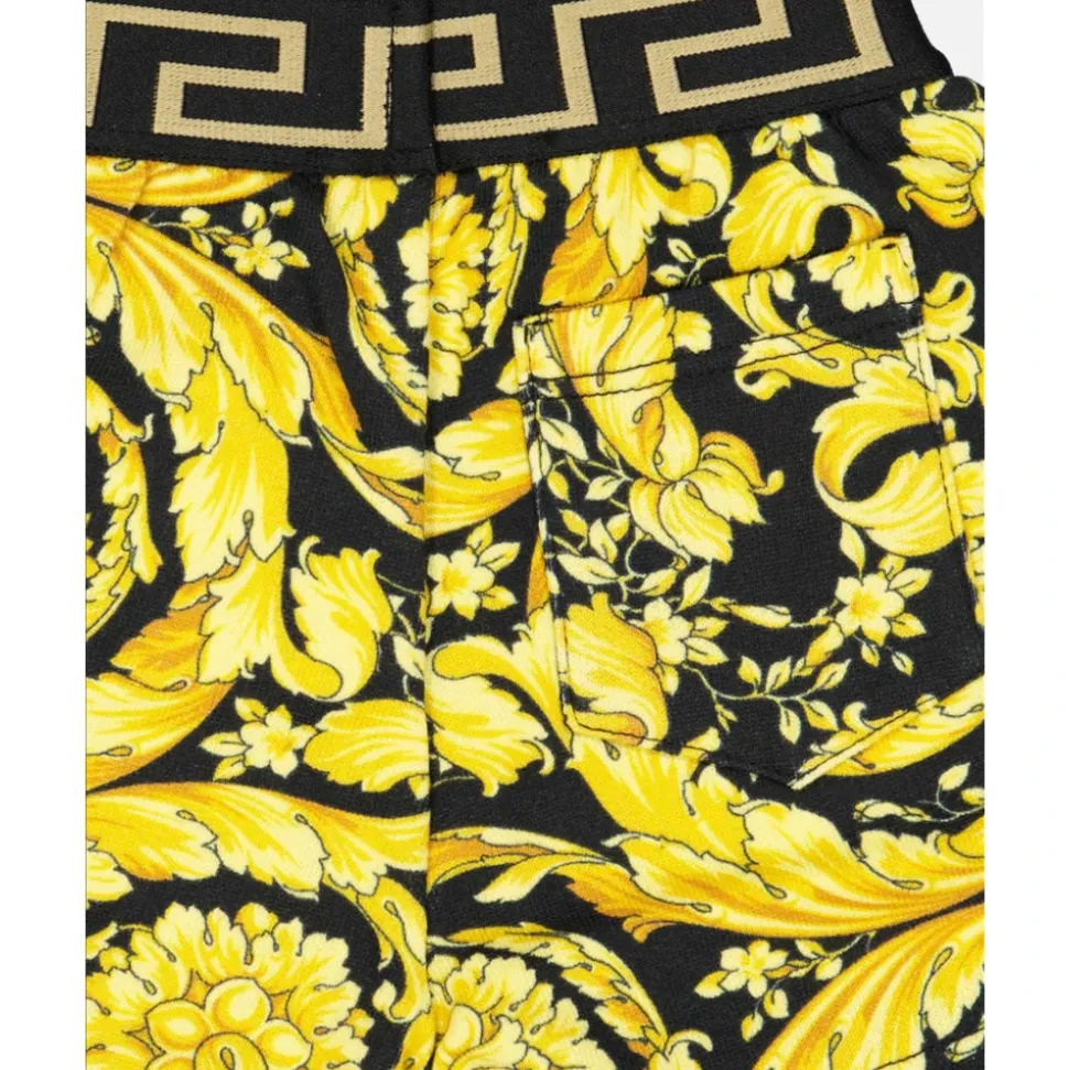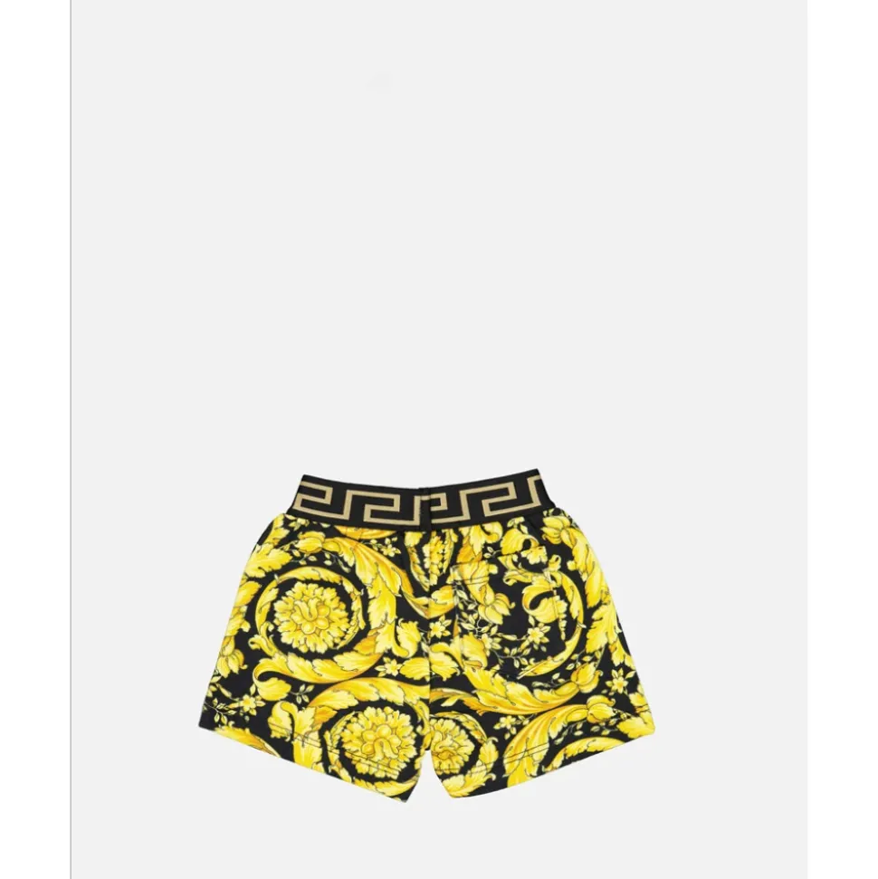 Verwen je kleine jongen met deze Versace Barocco Style Necklace shorts. Gemaakt in Italië van hoogwaardig katoen, deze zwart en goud shorts zijn perfect om een vleugje luxe toe te voegen aan elke outfit.