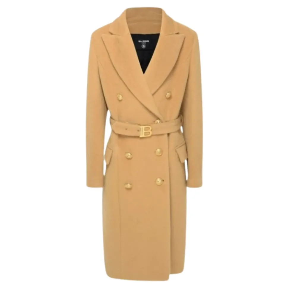 Verrijk de garderobe van uw kind met deze elegante beige wollen lange double-breasted jas van Balmain. Met logo-knopen en een taille riem met een metalen initiaal logo, combineert deze jas stijl en verfijning voor elke gelegenheid. Belangrijkste kenmerken: Camel | Bruin | 80% Wol | 20% Mohair | Logo-knopen | Opgestikte kleppen | Taille riem met metalen initiaal logo | Logo-knopen op de polsen | Centrale split aan de achterkant | Samenstelling en onderhoud: 80% Wol | 20% Mohair | 100% Viscose voering