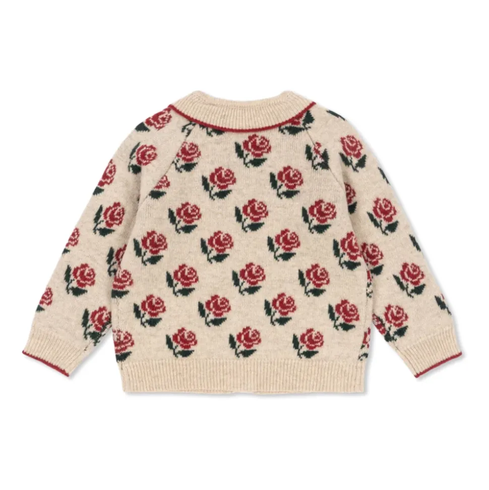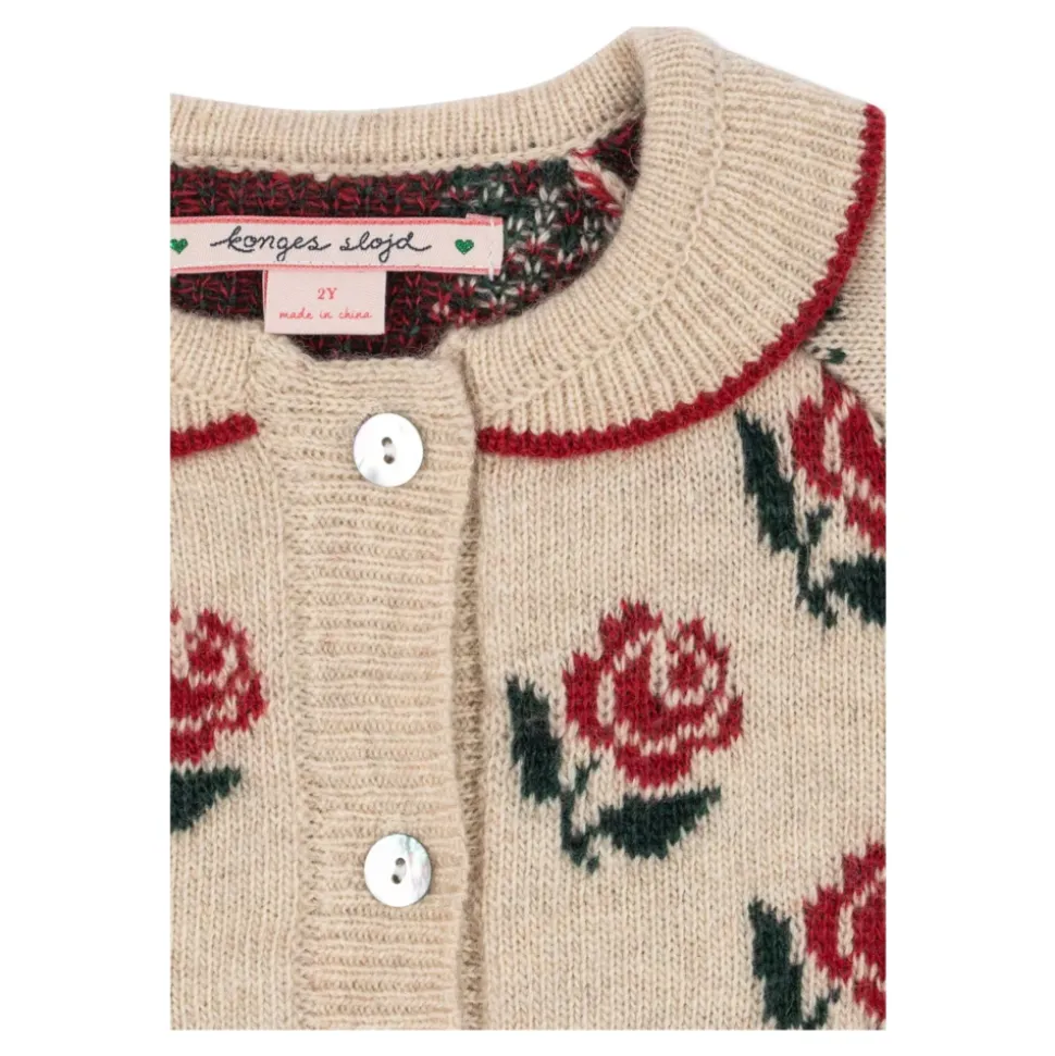 De Konges Sløjd Belou Knit Cardigan combineert een zachte wolmix met een delicaat rozenmotief voor lichtgewicht warmte en verfijnde alledaagse kleding. Het stuk valt op door zijn gebreide textuur en fijne knoopsluiting. Belangrijkste kenmerken: Beige | Rood | Wolmix | Warm | Zacht | Ademend | Knoopsluiting aan de voorkant | Knopen van parelmoer | Geribbelde boorden voor structuur | Ronde kraag | Lange mouwen | Bloemenrozenmotief | Rode contrasterende biezen | Geribbelde zoom en manchetten | Afmetingen & pasvorm: Valt normaal qua maat | Samenstelling & verzorging: 60% wol, 40% acryl | Handwas
