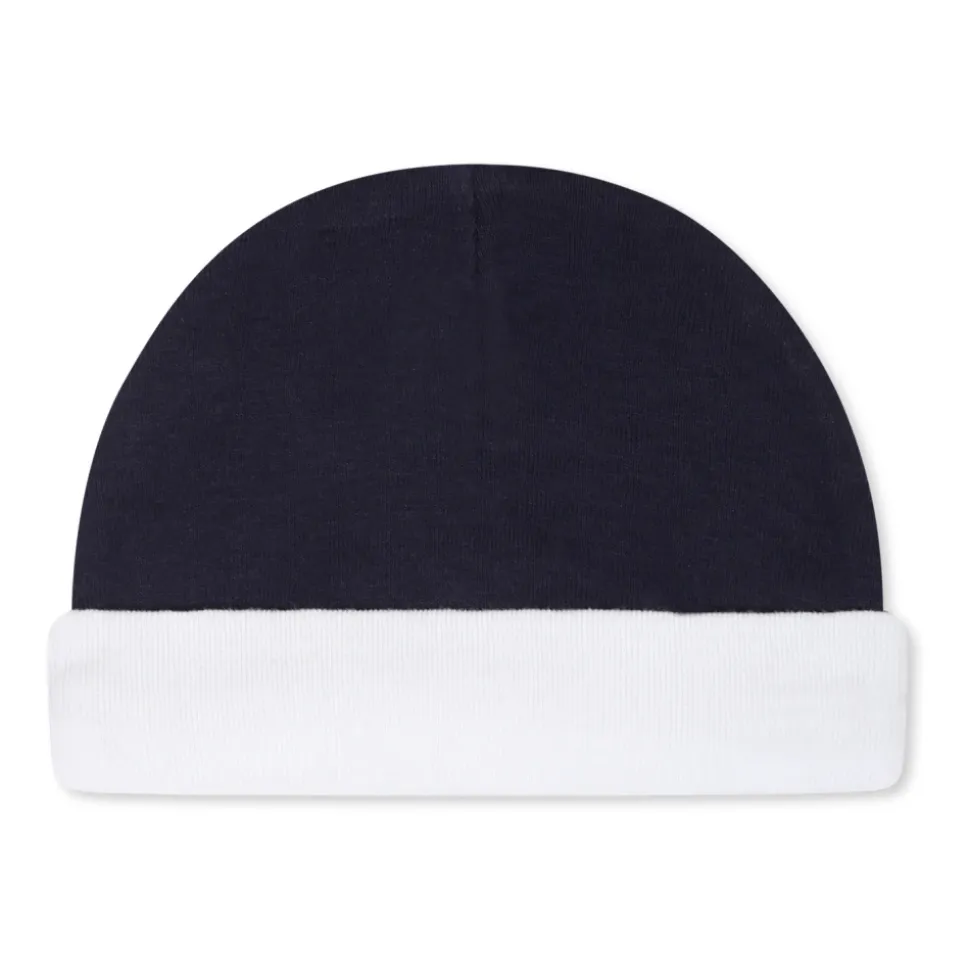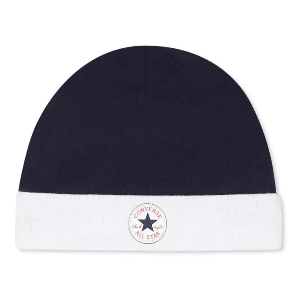 Kleed je kleintje in stijl met deze blauwe katoenen accessoireset van Converse. De set bevat een muts met omslag, een wit slabbetje met drukknoop en sokken met een geborduurd logo. Gemaakt van 100% katoen, is deze set zowel praktisch als modieus. Machinewasbaar op 30°C.