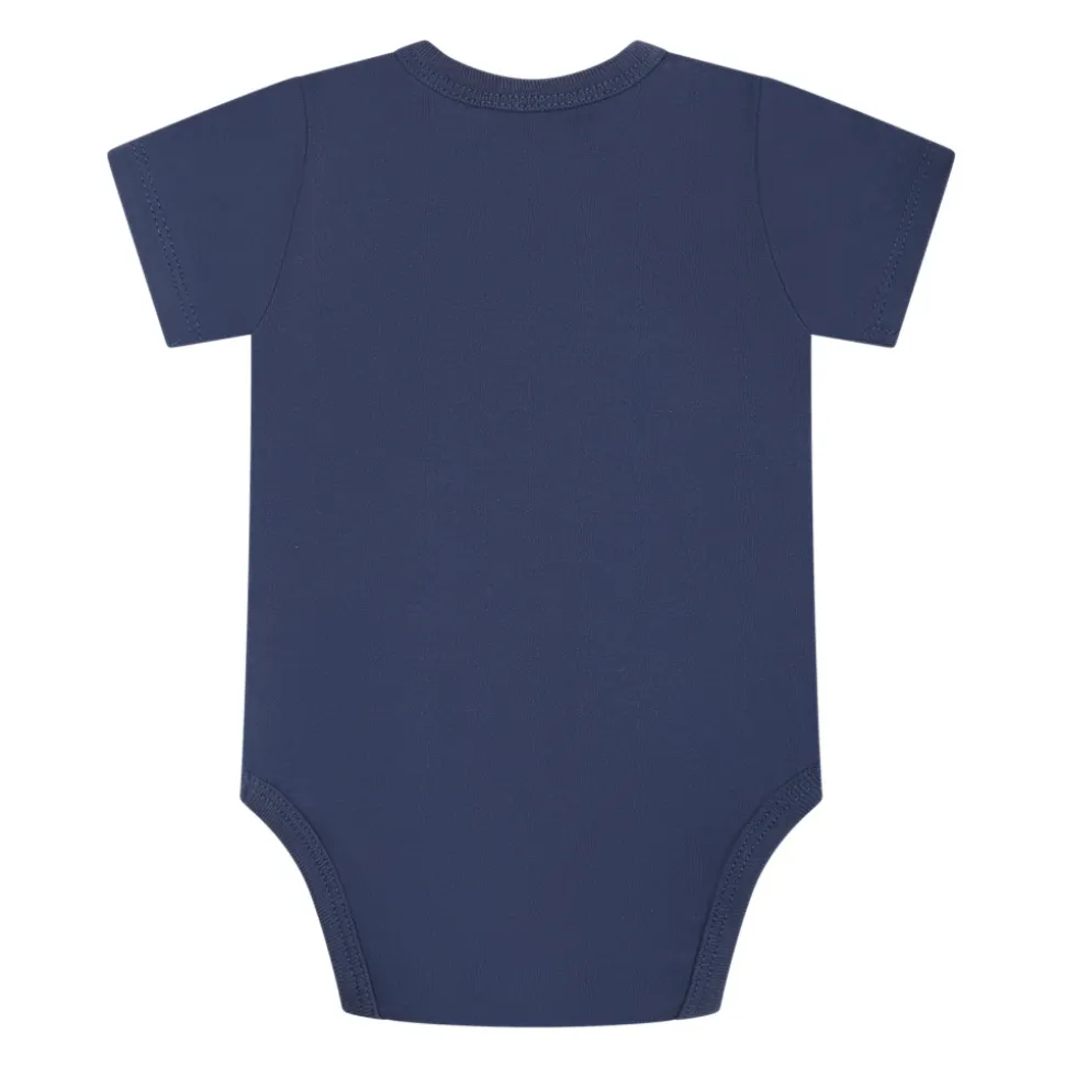 Kleed je kleintje in stijl met deze Timberland Kids Blue Cotton Bodysuit Set. Deze set bevat twee korte mouwen bodysuits gemaakt van 100% katoen, met een ronde hals en drukknoopsluiting op de schouder. Een bodysuit is versierd met een logoprint op de voorkant, terwijl de andere een all-over multicolor patroon heeft. Makkelijk te onderhouden, gewoon wassen op 30°C.