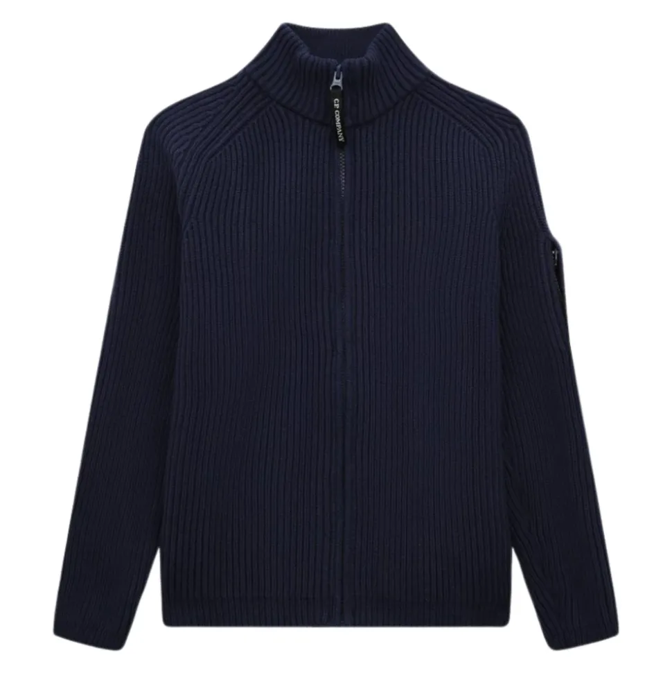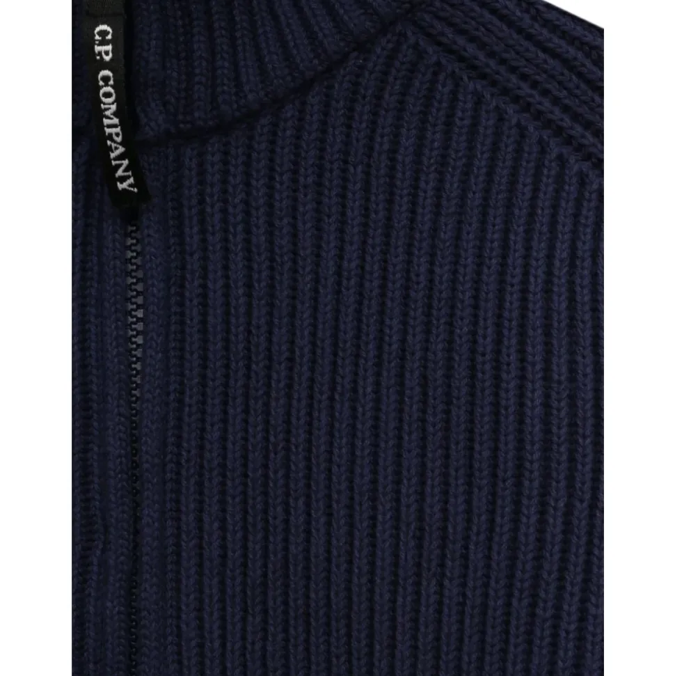 Upgrade je garderobe met dit stijlvolle blauwe ribgebreide vest van C.P. Company, met een hoge kraag en een centrale ritssluiting voor een moderne look. Belangrijkste kenmerken: Blauw | Ribgebreide stof | Hoge kraag | Lange mouwen | Centrale ritssluiting met logo stoffen ritstrekker | Mouwzak met lens applicatie | Afmetingen en pasvorm: Regular fit | Samenstelling en onderhoud: 80% katoen | 20% polyester