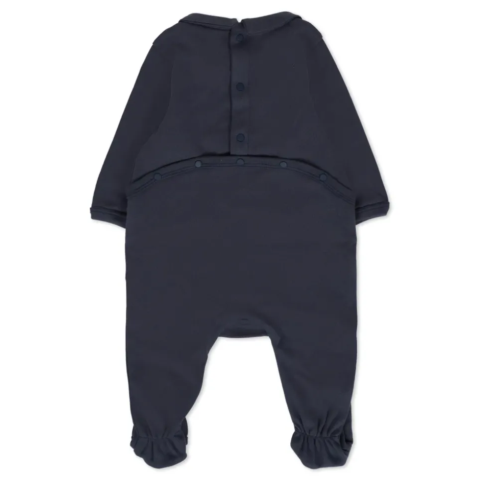 Kleed je kleintje in stijl met deze blauwe babygrow set van het luxe merk Givenchy Kids. Deze set bevat een babygrow, muts en slab, allemaal gemaakt van 100% katoen. De babygrow heeft een puntkraag, drukknoopsluiting op de rug en voetjes, terwijl de muts omgeslagen is voor extra schattigheid. De slab maakt de set compleet met een drukknoopsluiting aan de zijkant en een logo op de voorkant. Machinewasbaar op 30°C.