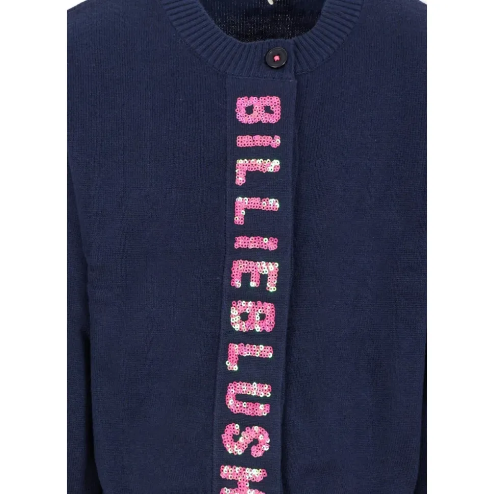 Kleed je kleintje in stijl met deze blauwe cardigan met lange mouwen van Billieblush. Voorzien van een geribbelde ronde hals, manchetten en zoom, evenals een knoopsluiting aan de voorkant, is deze cardigan versierd met een pailletlogo op de voorkant. Gemaakt van een mix van polyamide, katoen en viscose, is het zowel stijlvol als comfortabel. Machinewasbaar op 30°C.