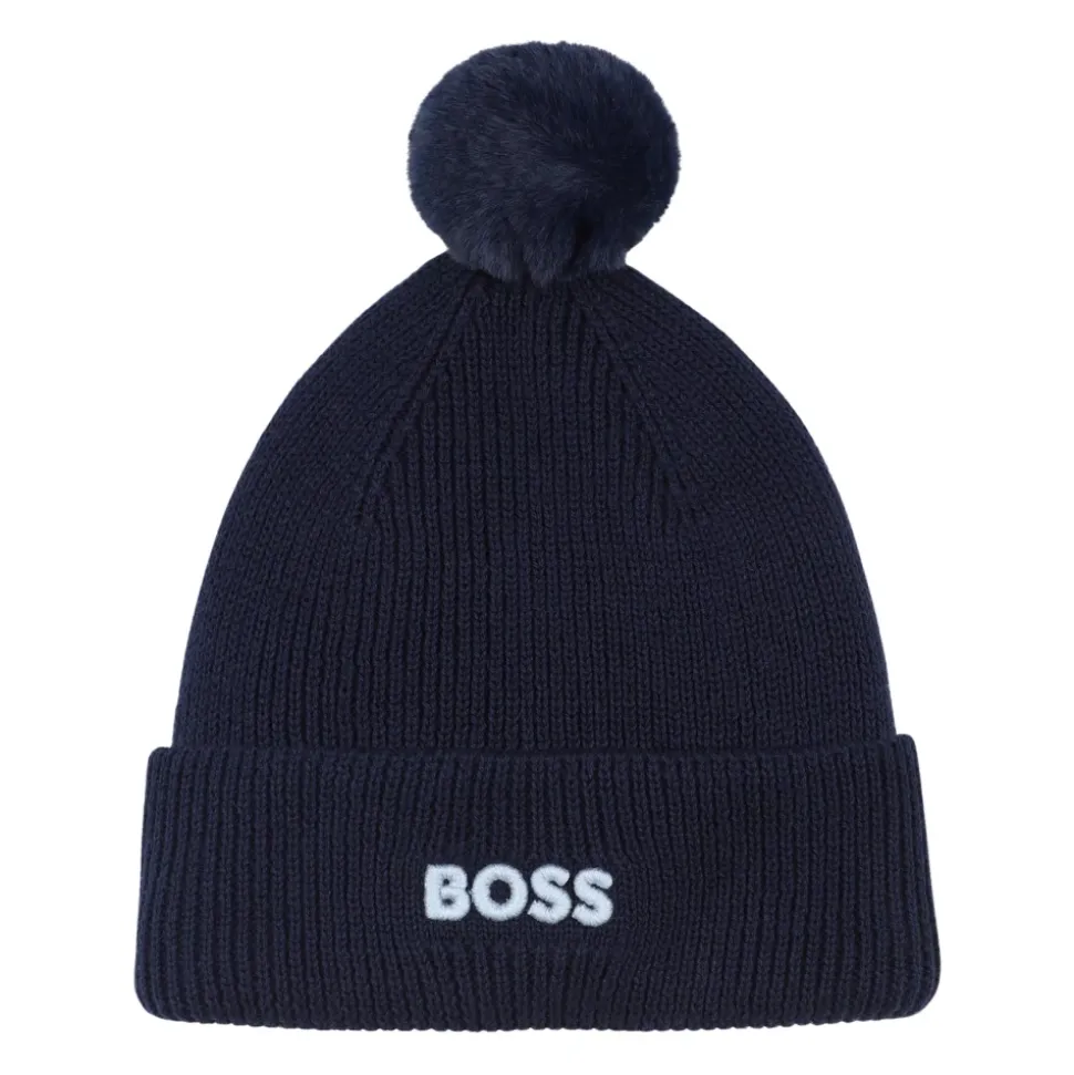 Blauwe Gebreide Baby Muts met Nep Shearling Voering
