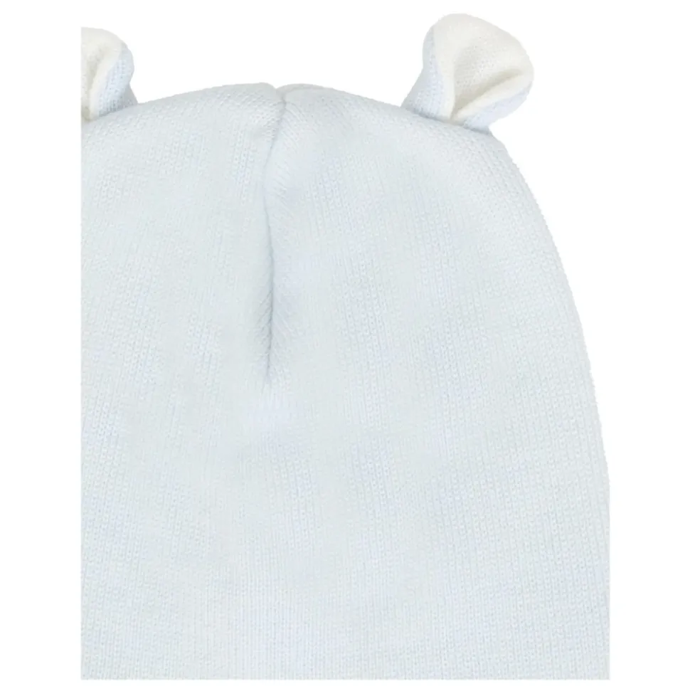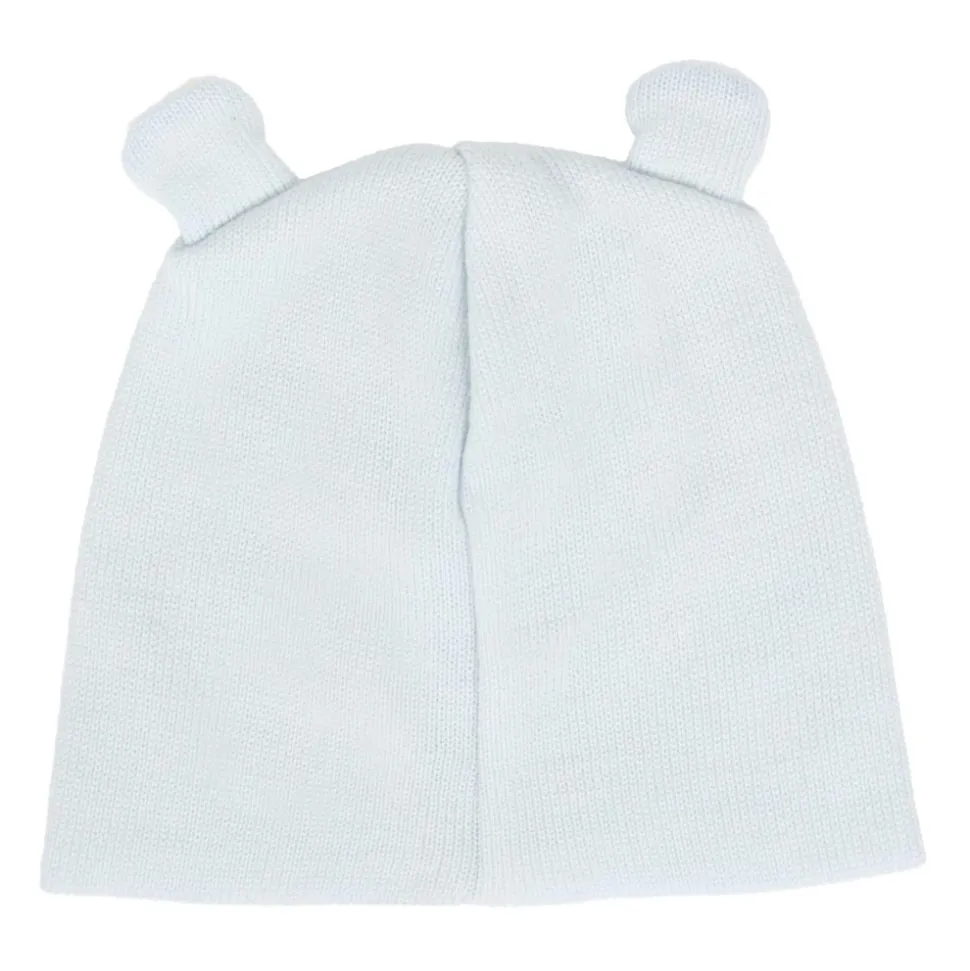 Little Bear lichtblauwe gebreide wollen muts met duifgrijze oren bovenop, gemaakt in Italië. 100% wol. Handwas.