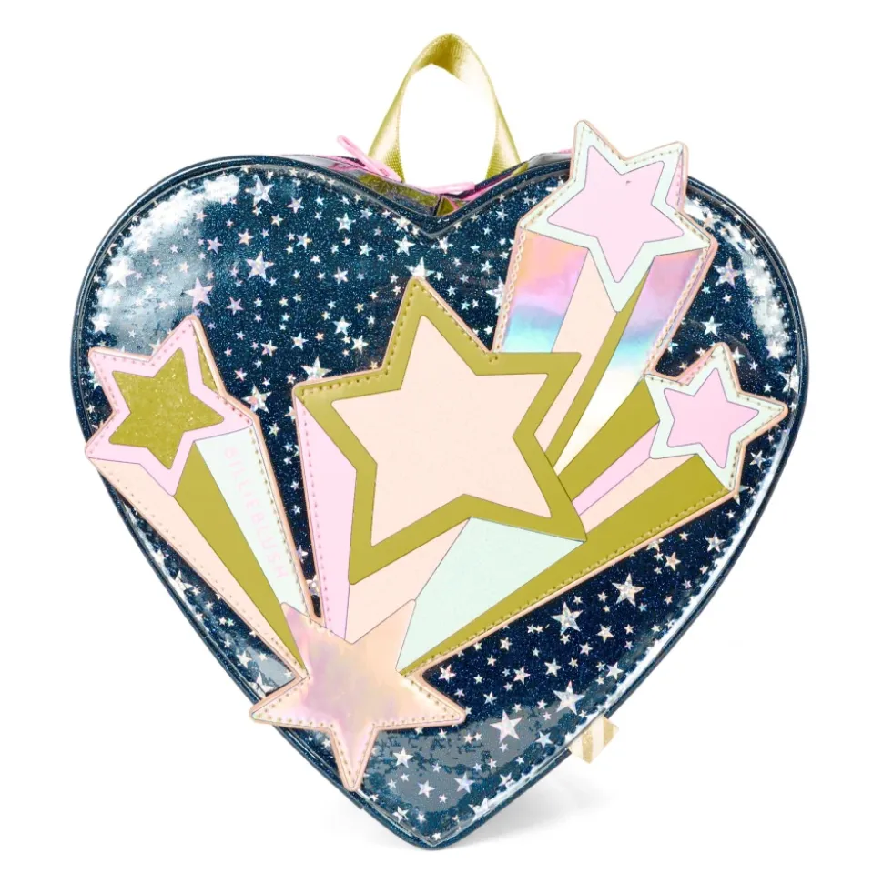 Maak je kleine meid klaar voor school met deze schattige Billieblush blauwe hartvormige rugzak. Voorzien van een ritssluiting, handvat en verstelbare schouderbanden, is deze rugzak versierd met schietende sterren. Gemaakt van 100% polyester. Afmetingen: 24cm x 22cm x 6cm.