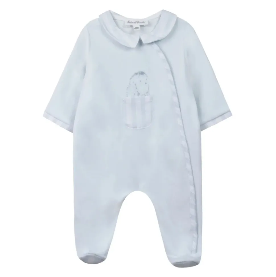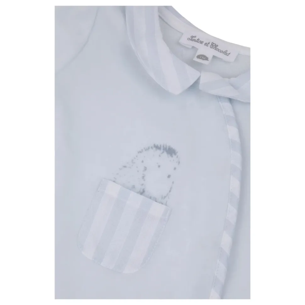 Lichtblauwe Garda-pyjama’s van Tartine et Chocolat, gemaakt van een katoenmix met een Peter Pan-kraag, borstzak, voorprint en lange mouwen, perfect voor kinderen in de categorie Body.