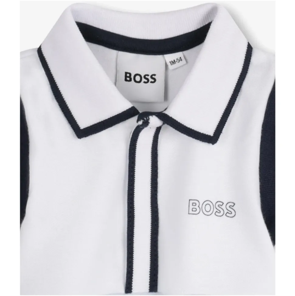 Ontdek de belichaming van luxe voor de kleinste fashionista’s met de BOSS Baby Boys Logo Print Romper in het blauw, een essentieel item voor SS2025. Prachtig vervaardigd, deze romper biedt zowel charme als gemak met iconische BOSS-branding, premium comfort, drukknoopsluitingen en een levendige blauwe tint. Ideaal voor trendsettende peuters.