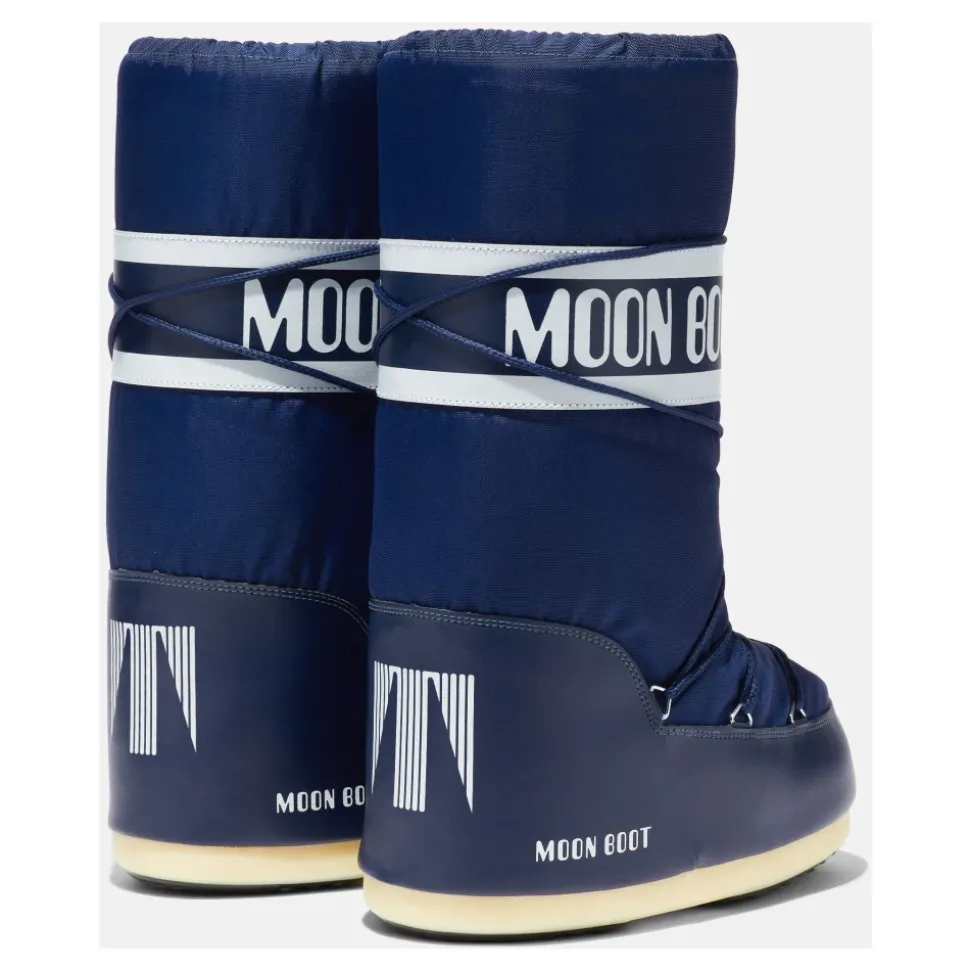 Geïnspireerd door de maanlanding van 1969, is de Moon Boot Icon vervaardigd met technologie vergelijkbaar met die van ruimte laarzen. Het heeft een antislip zool voor optimale grip en isolerende padding om de voet warm en droog te houden onder alle weersomstandigheden. Het Icon Blue in Nylon design is genderneutraal, ambidexter, 100% waterafstotend, met logoband, PVC hiel en afwerking, zilveren metalen oogjes, kruisvormige tubulaire veters, verstelbaar trekkoord, thermoplastische rubberen tussenzool (TR), antislip rubberen loopzool, multi-maat, instapmodel.