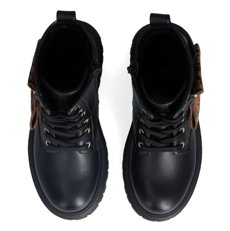 Liu Jo combat boots die een verfijnd design combineren met een opvallende strik met dierenprint. Gemaakt voor dagelijks gebruik, voegen ze een statement toe en bieden ze gemakkelijk aan- en uittrekken met een rits aan de binnenkant. Belangrijkste kenmerken: Zwart | Nero | Polyurethaan | profielzool | Comfortabele zool | Platte veters | Rits aan de binnenkant | Vetersluiting | Strik met dierenprint | Logo-opdruk op de zijkant | Logo geprint op de tong | Samenstelling & verzorging: Bovenwerk: 90% Polyurethaan, 10% Polyester | Volg de wasvoorschriften op het label in het product. Gemaakt in China.