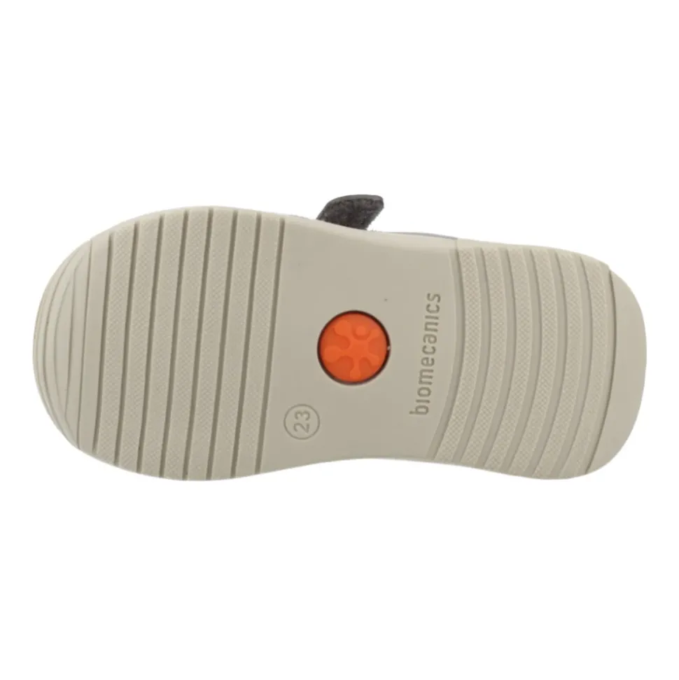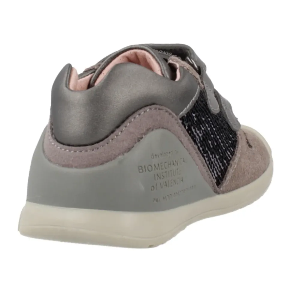 Biomecanics Botin Metalizado combineert een metallic afwerking met een zachte, flexibele constructie ontworpen voor dagelijks gebruik. Het benadrukt ademend vermogen en comfort door een micro-geperforeerde voering. Belangrijkste kenmerken: Grijs | Leer en synthetisch materiaal | Micro-geperforeerde, thermoregulerende voering | Klittenbandsluiting | Gelijmde constructie | Rubberen zool | Metallic afwerking | Afmetingen en pasvorm: Platte binnenzool (geen plantaire ondersteuning) | Samenstelling en onderhoud: Bovenkant: Leer en synthetisch materiaal | Voering en binnenzool: Textiel (microvezel, micro-geperforeerd) | Zool: Rubber