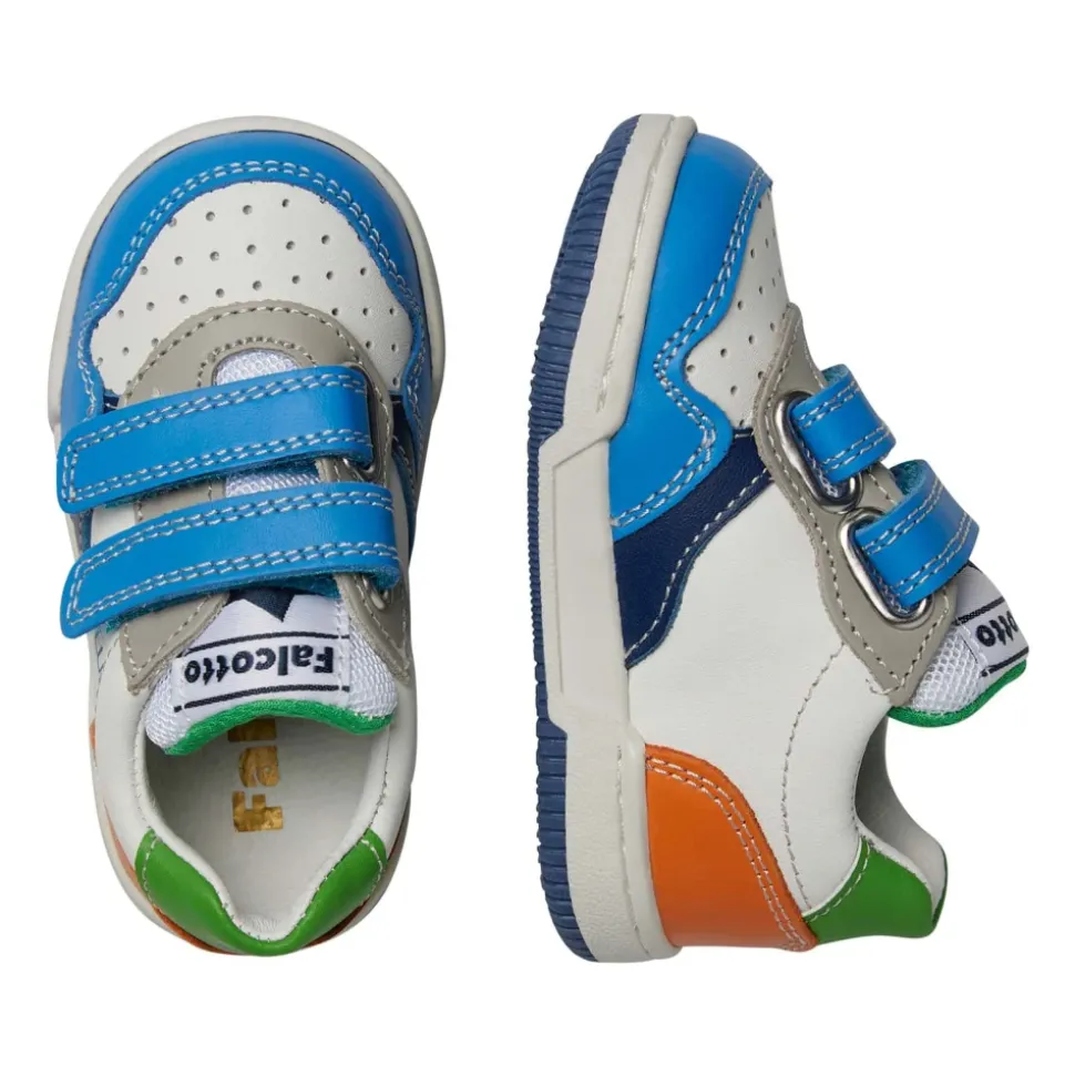Falcotto Bounce VL combineert een bovenwerk van leer en textiel met een contrasterende dubbele zool voor stabiel, stijlvol dagelijks gebruik. Deze sneakers zijn gericht op een stevige sluiting en grip voor zelfverzekerde stappen. Belangrijkste kenmerken: Multicolor | Wit | Lichtblauw | Leer en textiel | Antislip dubbele rubberen zool | Dubbele riemsluiting (klittenband) voor een veilige sluiting | Gestructureerde hiel voor extra stabiliteit | Contrasterende dubbele zool | Contrasterend gestructureerd hielstuk | Multicolor panelen | Samenstelling & onderhoud: Leer | Textiel | Rubber