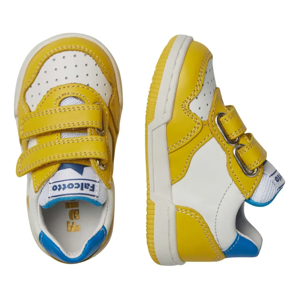 Falcotto BOUNCE VL. zijn leren en stoffen sneakers ontworpen voor actieve dagen. Ze combineren een dubbele compound zool en dubbele klittenbandsluiting voor veilige, stabiele stappen. Belangrijkste kenmerken: Multicolor | Wit | Geel | Leer | Anti-slip rubberen zool | Dubbele compound zool voor extra stabiliteit | Dubbele klittenbandsluiting | Leren en textielen binnenzool | Contrasterende dubbele compound zool | Contrasterende gestructureerde patch | Gestructureerde hiel | Samenstelling & onderhoud: Leer | Textiel | Rubber