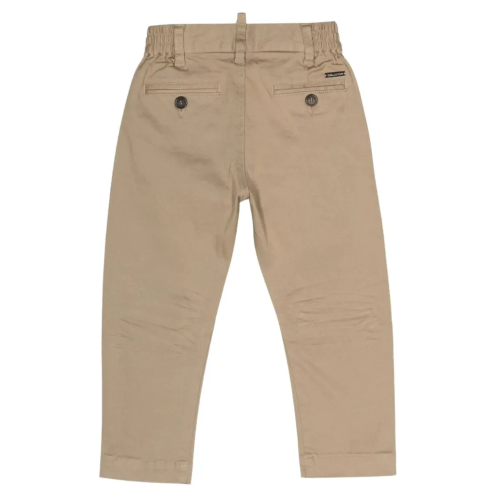 Dsquared2 broeken combineren een strak, draagbaar silhouet met praktische sluitingen en zakdetails voor dagelijks gebruik. Belangrijkste kenmerken: Beige | Zandkleurig | Katoen | Sluiting met knoop en verdekte ritssluiting aan de voorkant | Elastische tailleband | Riemlussen | Twee paspelzakken aan de voorkant | Twee achterzakken met split | Paspelzakdetails | Metalen logo applicatie | Samenstelling & verzorging: 98% Katoen | 2% Elastaan