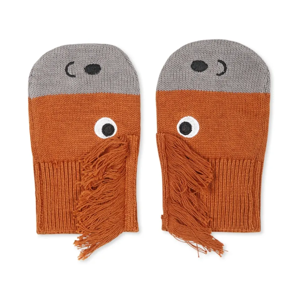 Voeg een vleugje fantasie toe aan de wintergarderobe van je kleintje met deze bruine paardvormige wanten van Stella McCartney. Gemaakt van een katoenmix, ze hebben een geribbelde zoom, franje aan de bovenkant en geborduurde ogen. Gemaakt van 95% katoen en 5% wol, deze wanten zijn machinewasbaar op 30°C.