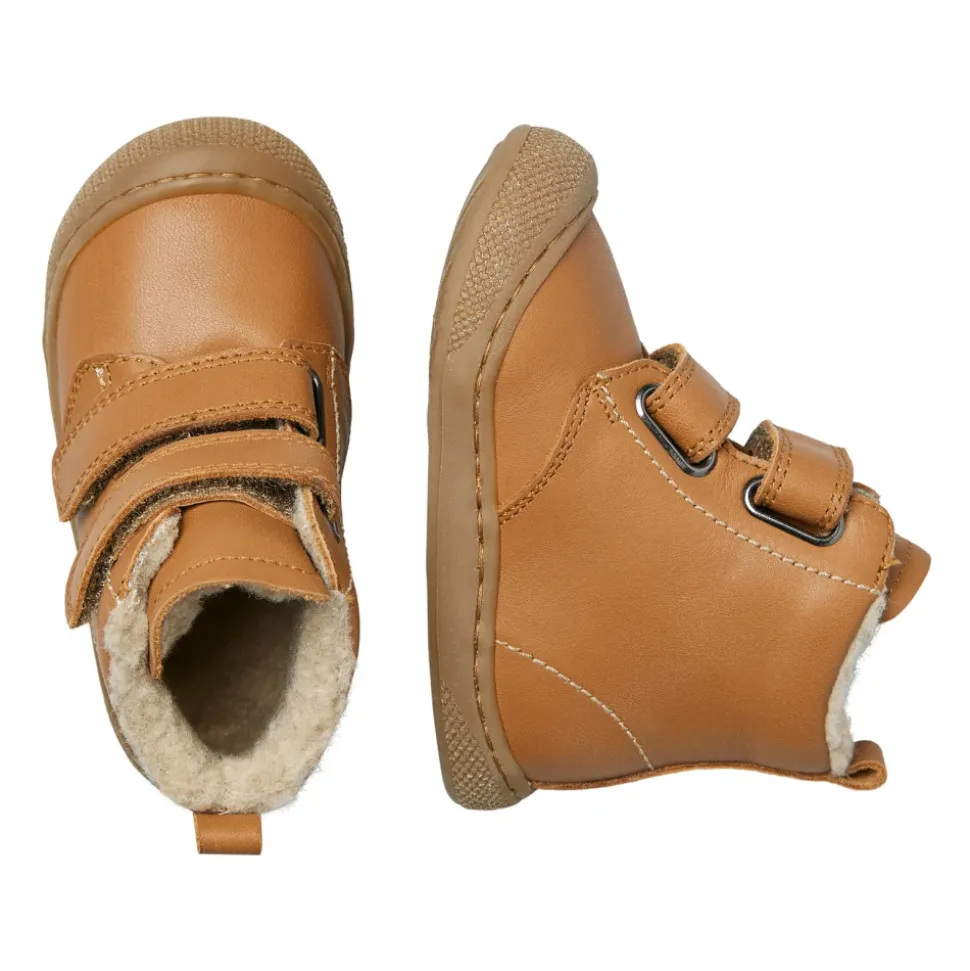 Naturino BUBBLE WIDE VL combineert zacht nappaleer met een wollen voering voor warm, winterklaar comfort. Dubbele riemsluitingen en een versterkte rubberen zool zorgen voor een veilige pasvorm en bescherming. Belangrijkste kenmerken: Bruin | Cognac | Nappaleer | Warme wollen voering | rubberen zool | Verstevigde neus voor extra bescherming | Wollen binnenzool | Wollen voering | Rubberen buitenzool | Enkel laars | Dubbele riemsluiting | Verstevigde ronde neus | Samenstelling & onderhoud: Nappaleer | Wol | Rubber