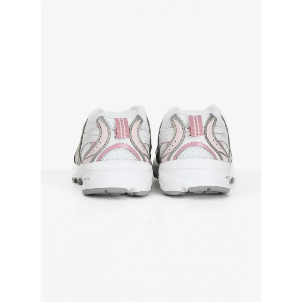 NEW BALANCE Sneakers 530 Bungee in wit, zilver en roze voor babyjongens. Deze kindersilhouet combineert alledaagse stijl met moderne technologie voor maximaal comfort onder de voet. Herfst winter seizoen. Lage witte baby sneakers voor herfst winter IZ530EC.