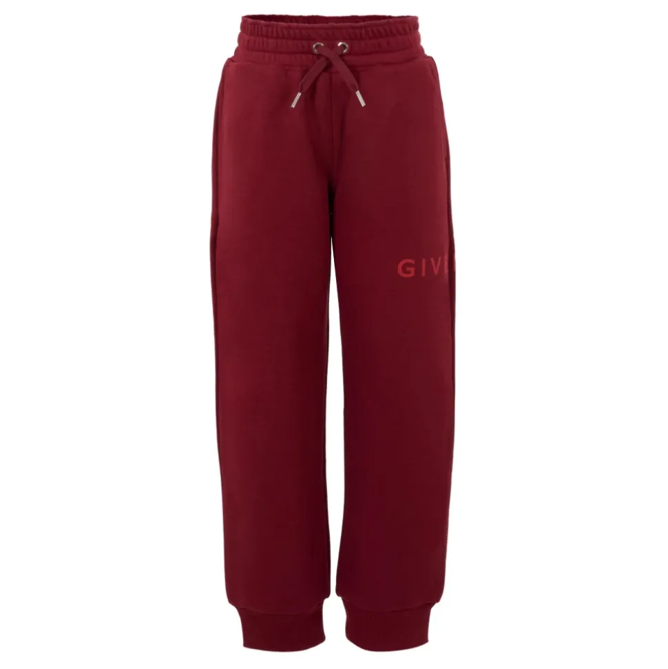 Kleed je kleintje in stijl met deze burgundy broek van Givenchy Kids. Gemaakt van een gauzed katoenmix, hebben ze een elastische taille, trekkoord, zijzakken, een achterzak en geribbelde enkels. De broek is versierd met het logo van het merk rond één been. Samenstelling: 85% katoen, 15% polyester. Wasinstructies: Machinewas op 30°C.