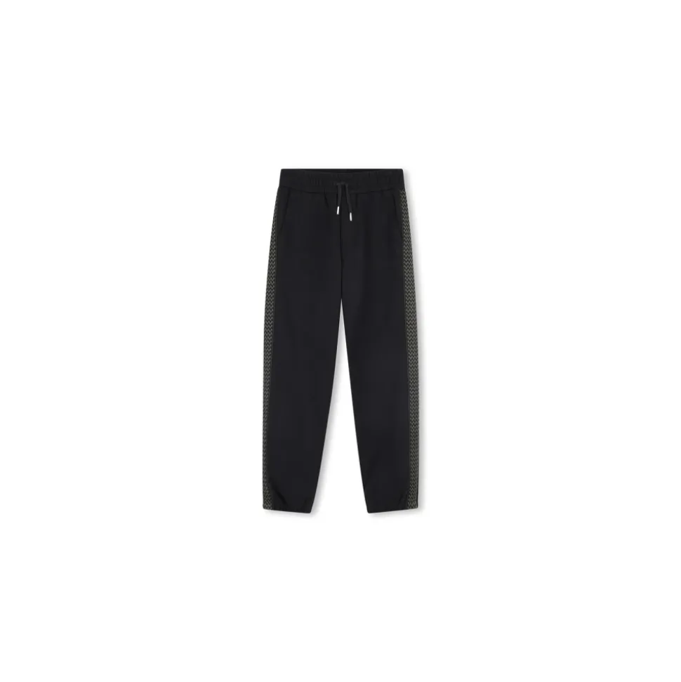 De Lanvin Chevron Joggers combineren alledaags comfort met een opvallend chevron detail aan de zijkant. Deze joggers zijn ontworpen voor ontspannen gebruik en zijn voorzien van een verstelbare tailleband met trekkoord en elastische enkels voor een veilige pasvorm. Belangrijkste kenmerken: Zwart | Groen | Katoen | Elastische tailleband met trekkoord | Elastische manchetten | Zijzakken | Chevron details langs de zijkanten | Jogger silhouet | Samenstelling & onderhoud: 100% katoen