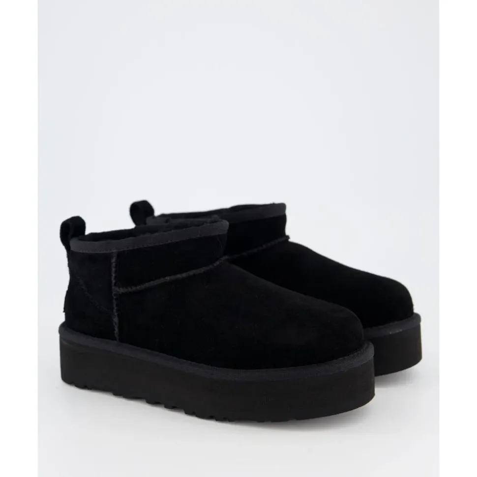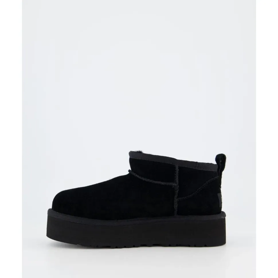 De UGG Classic Ultra Mini Platform combineert een compacte platformzool met een zachte UGGplush-voering voor comfortabel, dagelijks gebruik. Het ontwerp biedt een balans tussen een zacht, gedempt gevoel en gemakkelijk aan- en uittrekken. Belangrijkste kenmerken: Black | Zwart | Suède | Lichtgewicht EVA platformzool | Gewatteerde binnenzool | Zachte UGGplush-voering | Treklus aan de achterkant voor gemakkelijk aan- en uittrekken | Schuim voetbed | Asymmetrische bovenrand | Overlock stikseldetails | Kenmerkende dubbele naden | Platformprofiel | Afmetingen en pasvorm: Valt normaal qua maat – bestel je gebruikelijke maat. | Samenstelling en onderhoud: Bovenkant: Suède | Voering: 17 mm UGGplush (60% wol, 40% TENCEL Lyocell) | Binnenzool: 17 mm UGGplush (60% wol, 40% TENCEL Lyocell) | Tussenzool: EVA | Buitenzool: Suikerriet EVA | Voetbed: Schuim