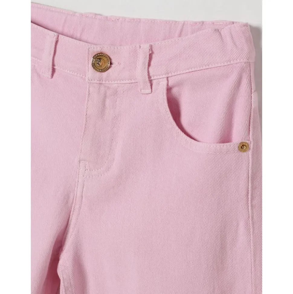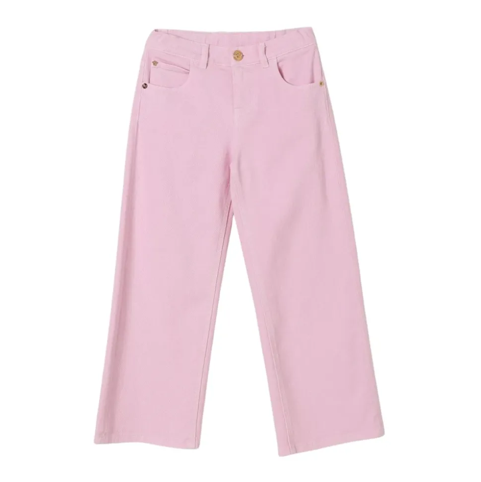 De Versace comfortabele denim broek met wijde pijpen, zakken en elastische tailleband combineert een ontspannen wijde pijpen vorm met een elastische taille en praktische zakken voor dagelijks gebruik. Belangrijkste kenmerken: Roze | Denim | Comfortabele pasvorm | Elastische tailleband | Zakken | Wijde pijpen | Afmetingen en pasvorm: Comfortabele pasvorm | Wijde pijpen silhouet | Elastische tailleband | Samenstelling & verzorging: Machinewas koud, droogtrommel laag.