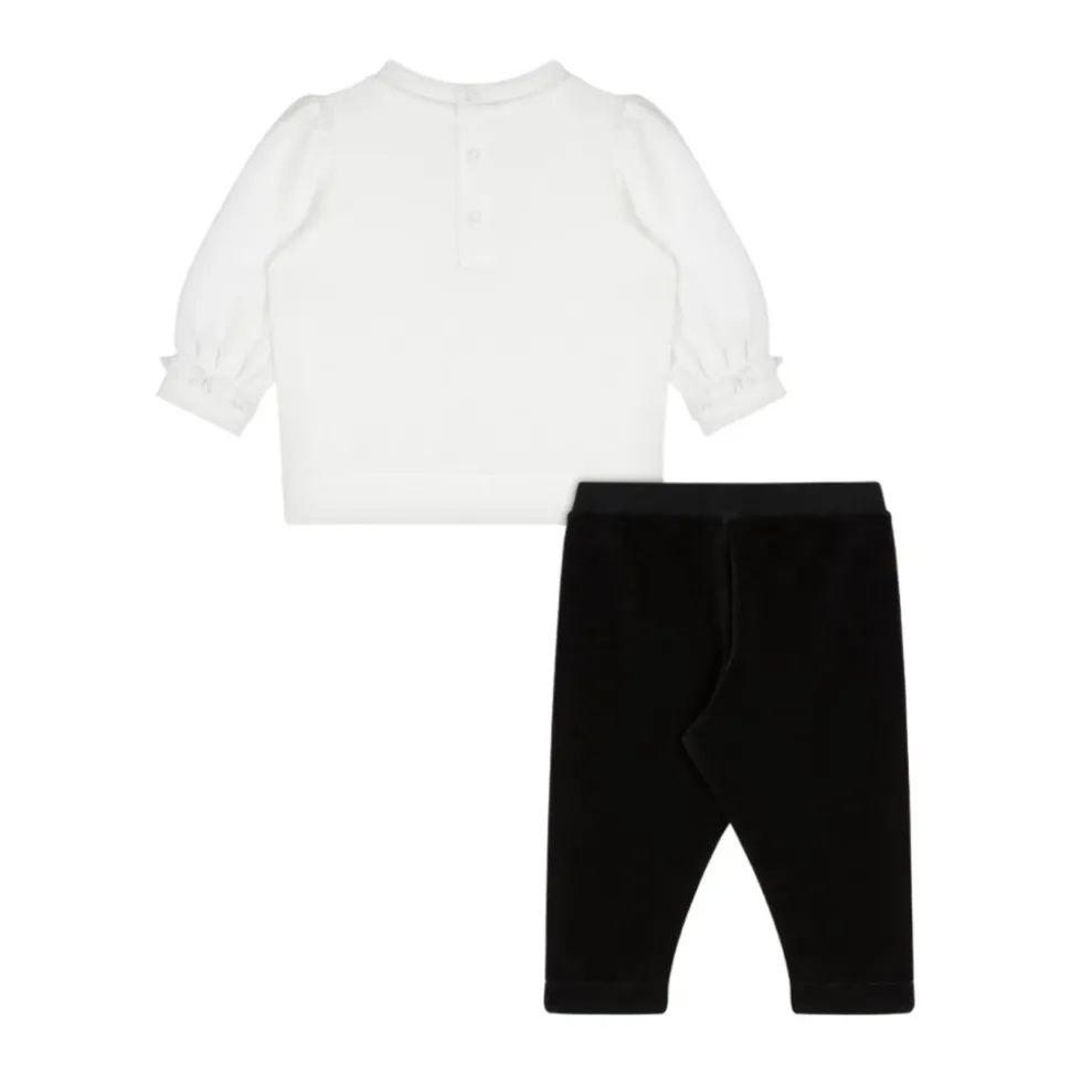 Geef je kleine meid een vleugje stijl en comfort met de Moschino Kids set, gemaakt van zacht katoen fleece. De bijpassende broek heeft een elastische tailleband en elastische enkels voor een veilige en comfortabele pasvorm.