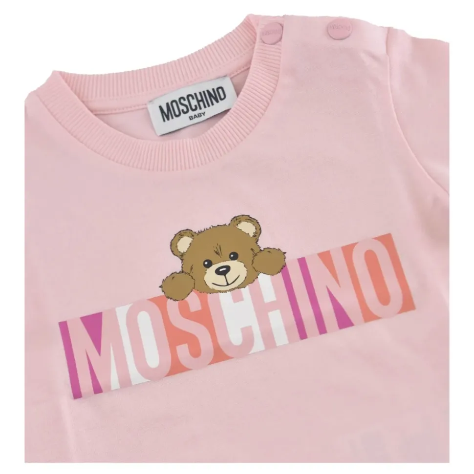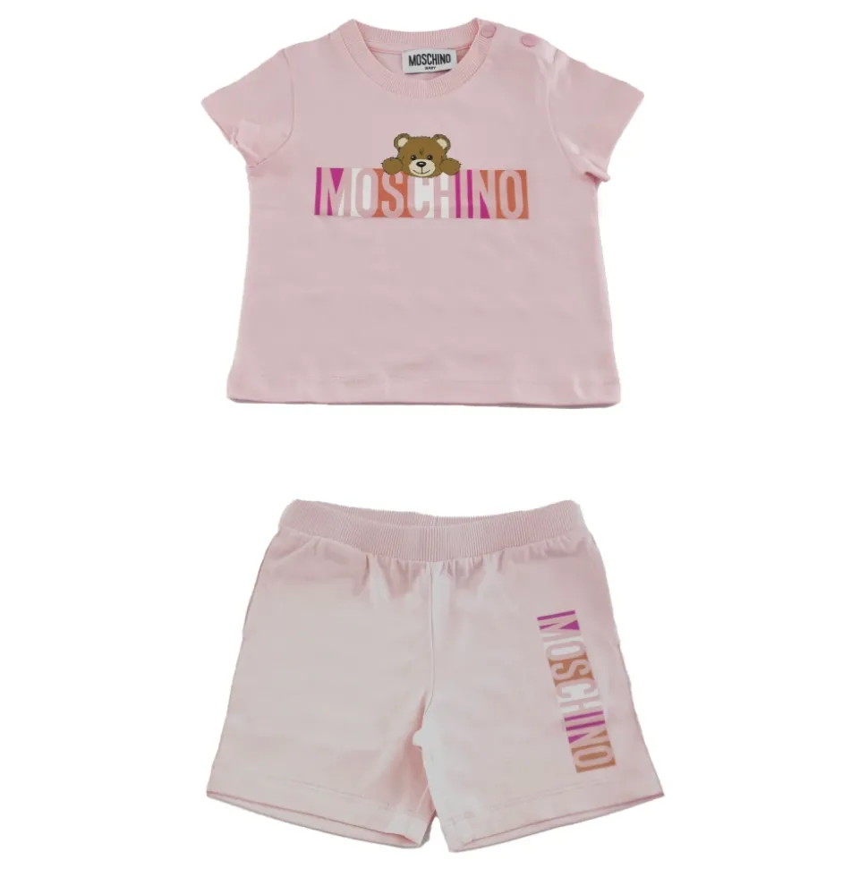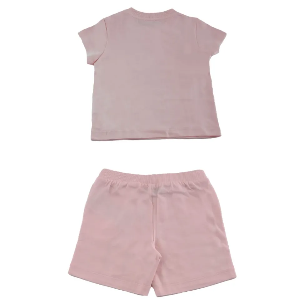 Moschino Completo Sportivo combineert een zacht katoenen T-shirt met shorts met elastische tailleband voor dagelijks comfort en speelse, kenmerkende Teddybeer-details. De set combineert een eenvoudige snit met levendige accenten voor een gemakkelijke, stijlvolle look. Belangrijkste kenmerken: Roze | Rosa | Katoen | Ademend | Comfortabel | | Drukknoopsluiting op de schouder voor gemakkelijk aankleden | Elastische tailleband | Zijzakken op de shorts | Ronde hals | Korte mouwen | Geribbelde boorden | Teddybeer-motief en logoprint | Drukknoopjes op de schouder | Afmetingen & pasvorm: Comfortabele pasvorm | Samenstelling & verzorging: 100% katoen | Niet chemisch reinigen. Niet in de droogtrommel. Gebruik geen bleekmiddel. Gebruik een mild wasmiddel zonder bleekmiddelen. Strijk op een maximale temperatuur van 110°C; bij voorkeur met stoom. Volg het waslabel in het kledingstuk.
